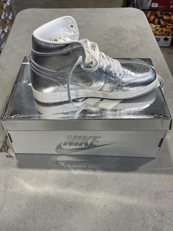 NEW NIKE WOMENS AIR JORDAN 1 RETRO HIGH OG METALLIC SILVER SIZE US 10
