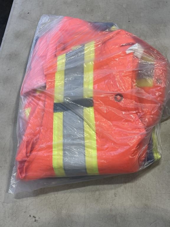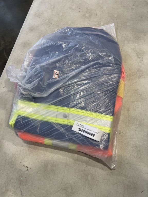 NEW NOMEX FLAME RESISTANT COVERALL SIZE 50T, SAFETY RAIN BIB PANT SIZE L, AND REFLECTIVE VEST SIZE XL