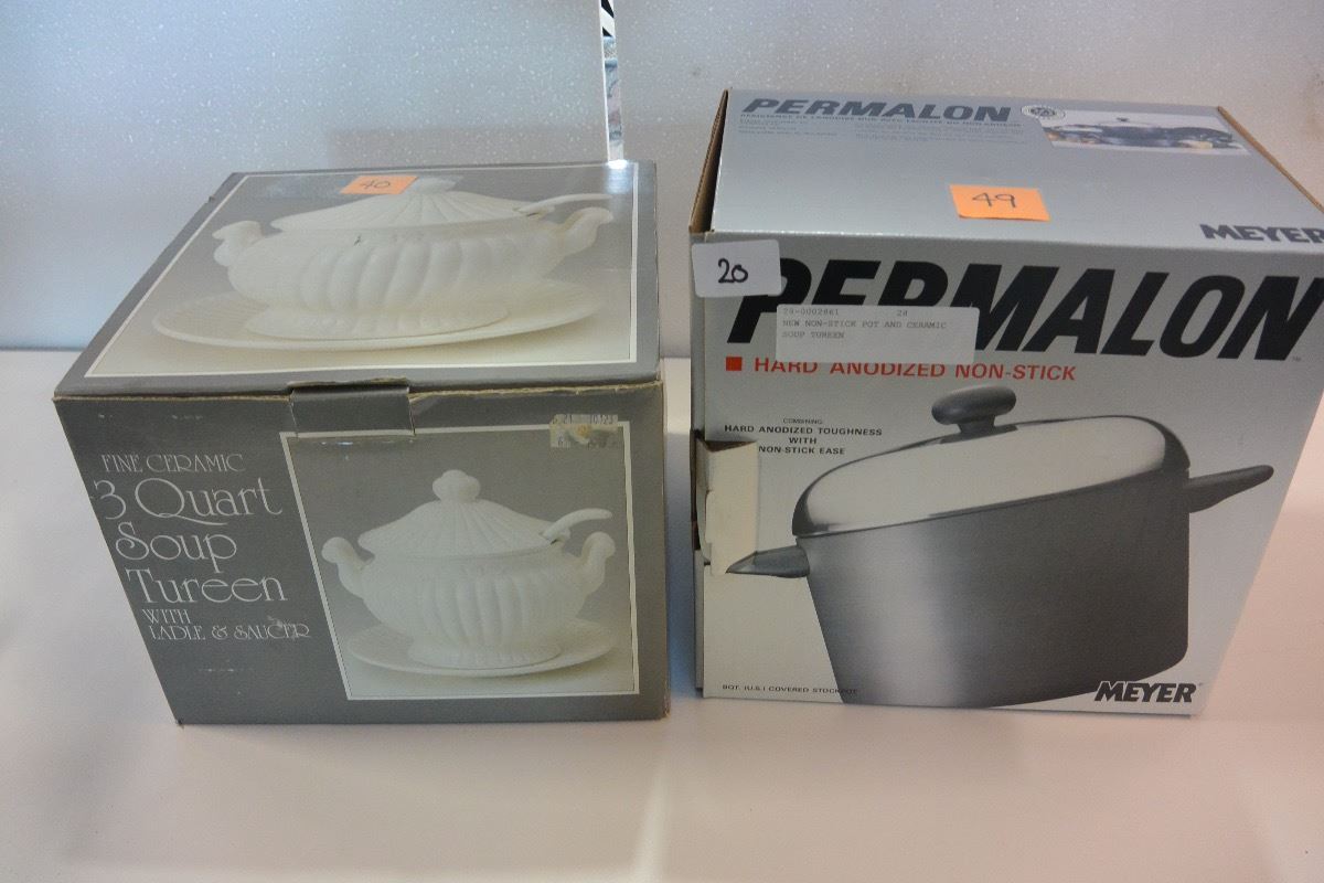 NEW NON-STICK POT AND CERAMIC SOUP TUREEN