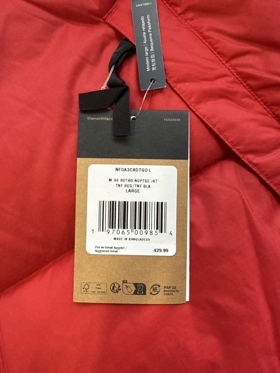 NEW NORTH FACE 96 RETRO NUPTSE JACKET RED / BLACK EXPEDITION , SIZE MENS LARGE RETAIL $430