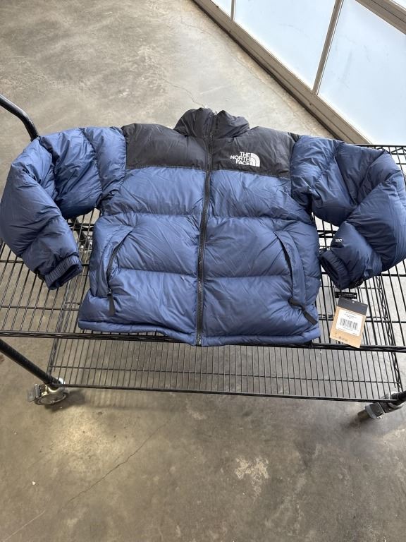 NEW NORTH FACE 96 RETRO NUPTSE JACKET, SIZE MENS MEDIUM, SHADY BLUE 700 DOWN FILL RETAIL $399, ONE SMALL 1CM TEAR FRONT LOWER, SEE PICS