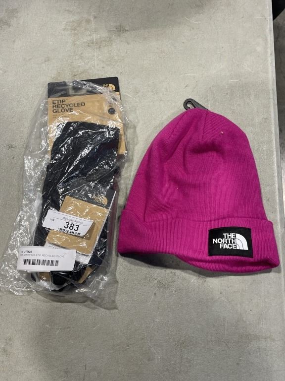 NEW NORTHFACE ETIP RECYCLED GLOVE SIZE LARGE AND NEW NORTH FACE FUSCHIA PINK BEANIE