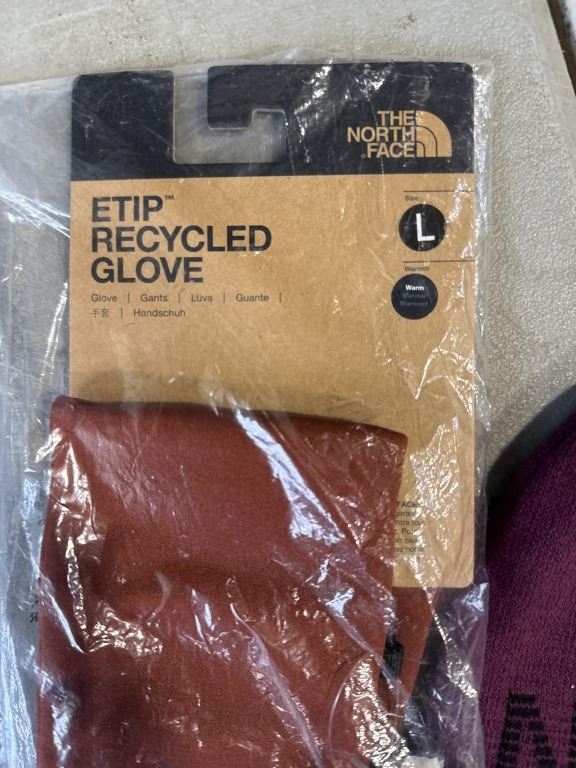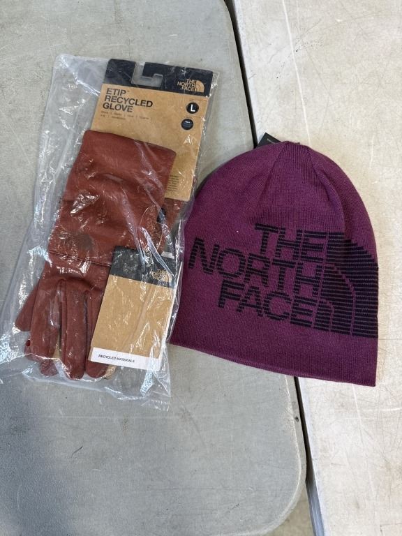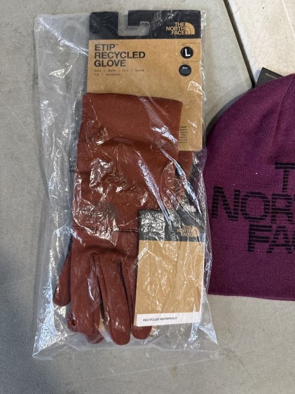 NEW NORTHFACE ETIP RECYCLED GLOVE SIZE LARGE AND NEW NORTH FACE HIGHLINE BOYSENBERRY BEANIE