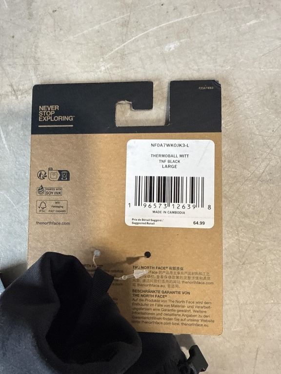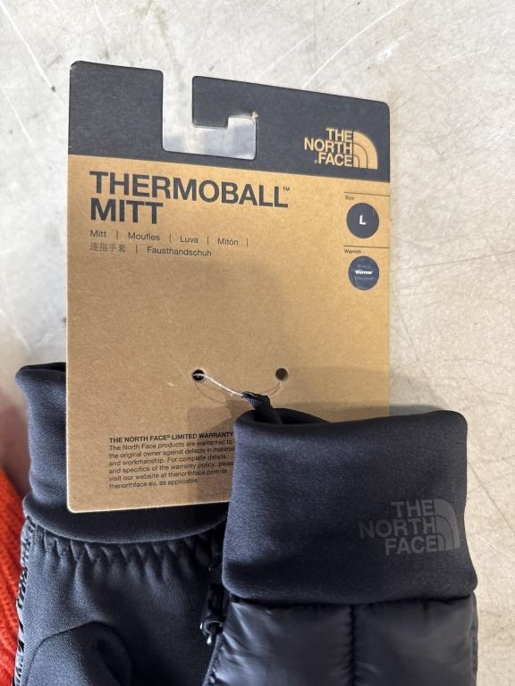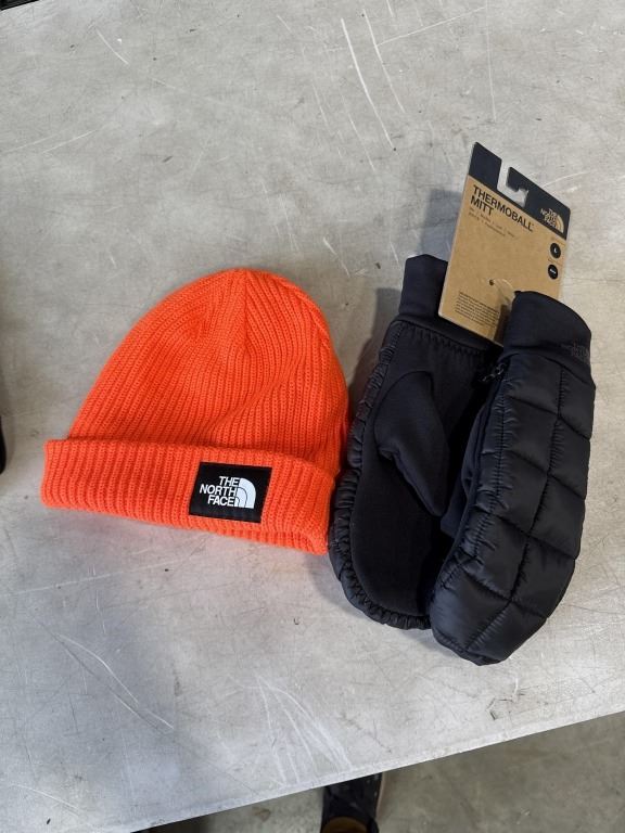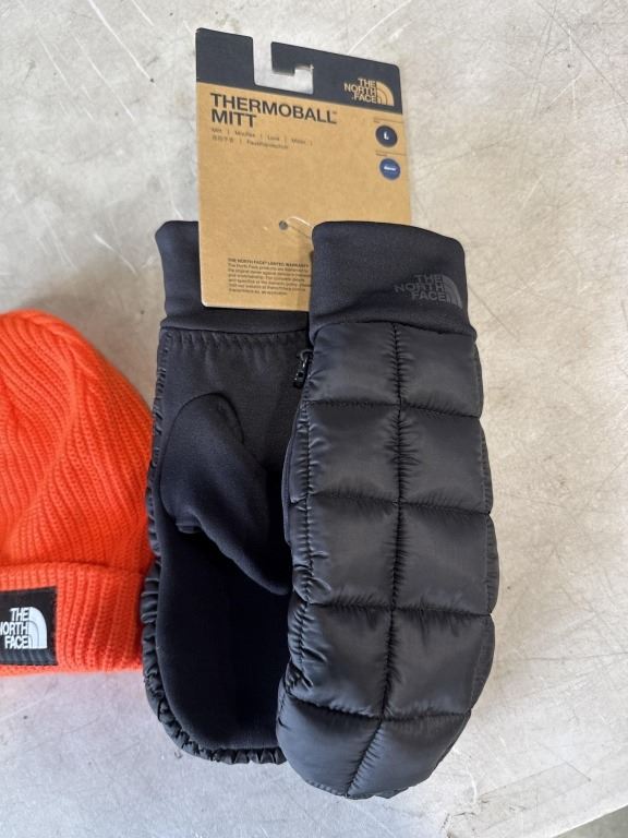 NEW NORTHFACE KNITTED AND LINED TOQUE AND NEW NORTH FACE THERMOBALL SIZE LARGE GLOVES