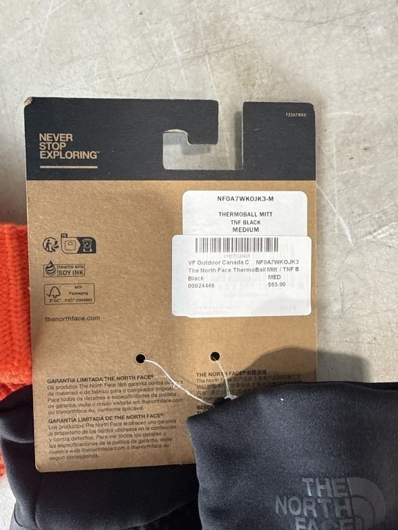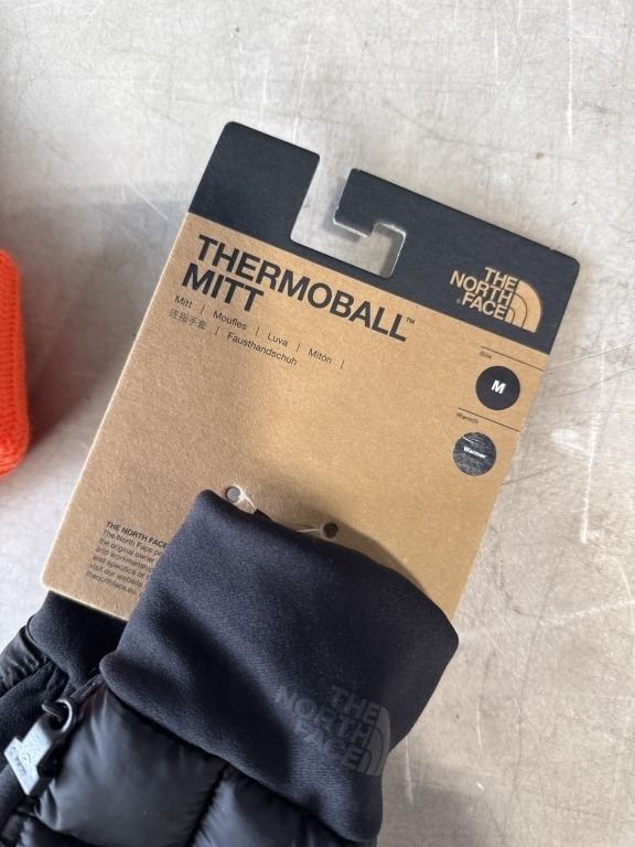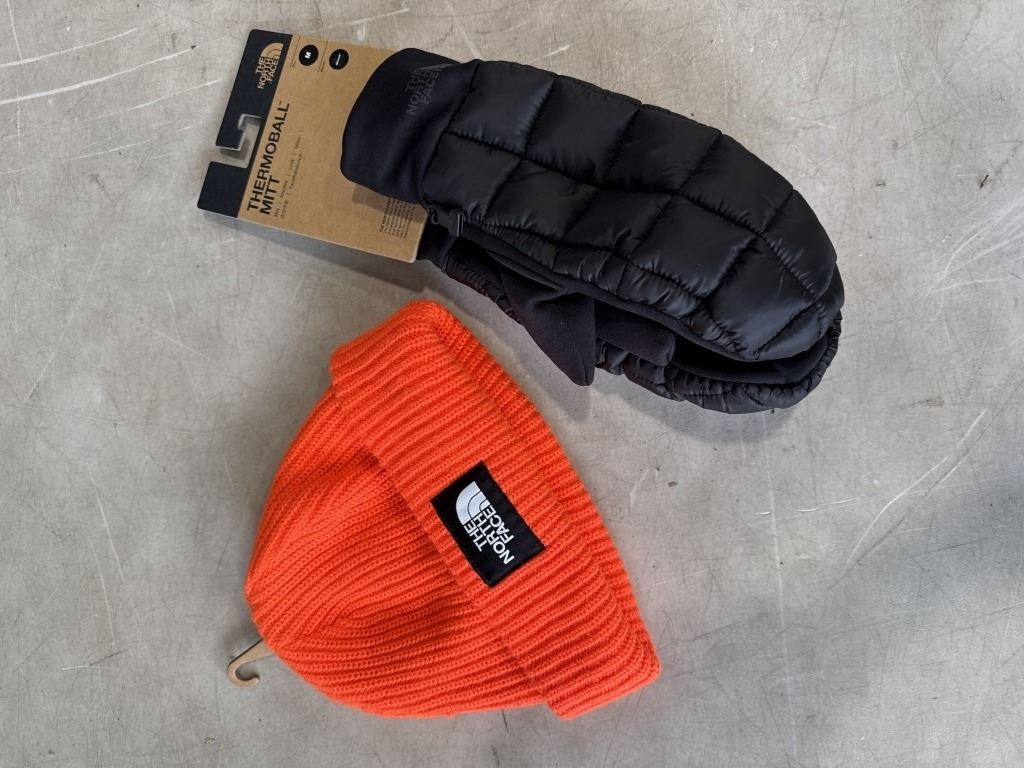 NEW NORTHFACE KNITTED AND LINED TOQUE AND NEW NORTH FACE THERMOBALL SIZE MEDIUM GLOVES