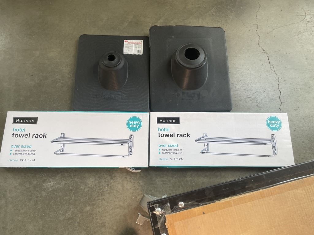 NEW OATEY ROOF FLASHINGS AND 2 NEW BATHROOM TOWEL RACKS
