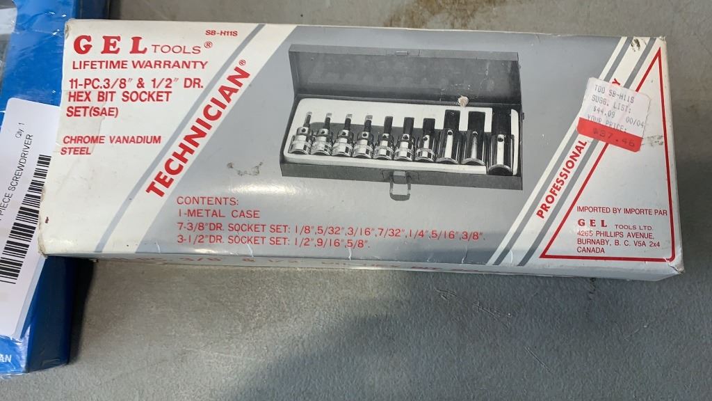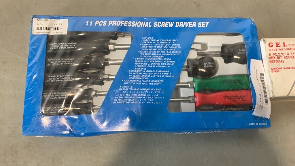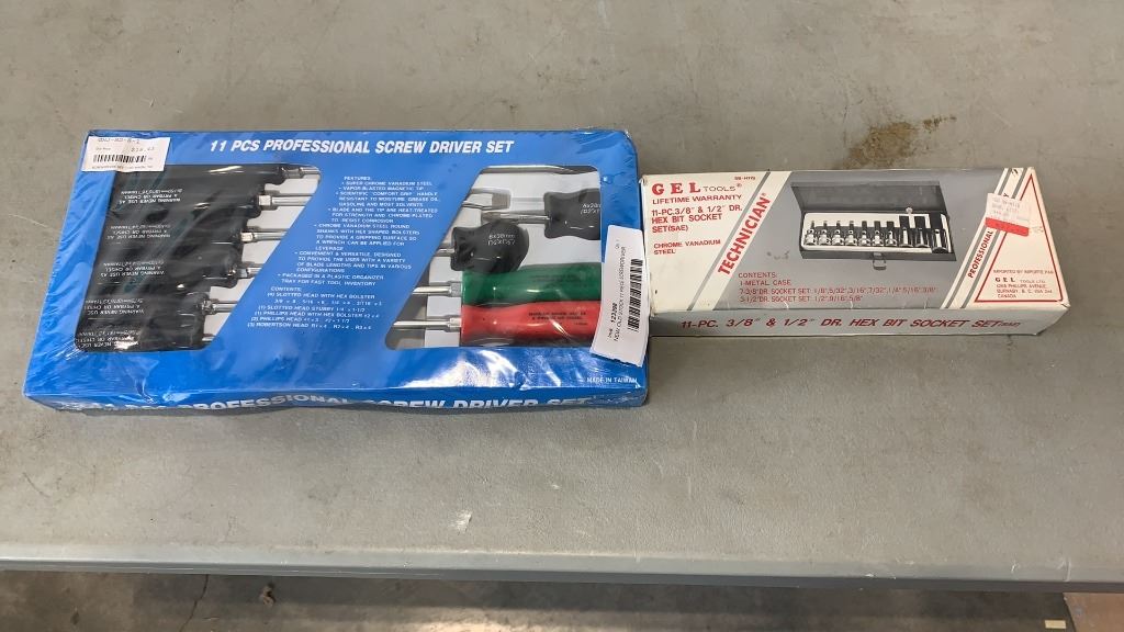 NEW OLD STOCK 11 PIECE SCREWDRIVER SET AND 11 PIECE 3/8 AND 1/2 INCH HEX BIT SOCKET SET