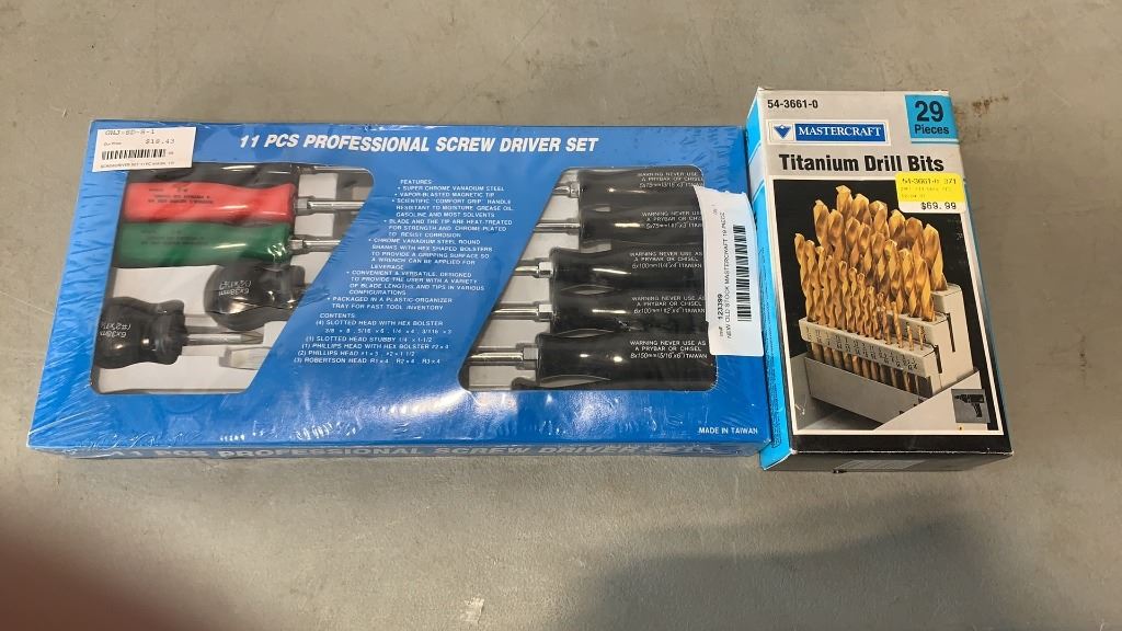 NEW OLD STOCK MASTERCRAFT 29 PIECE DRILL BIT SET AND 11 PIECE SCREWDRIVER SET
