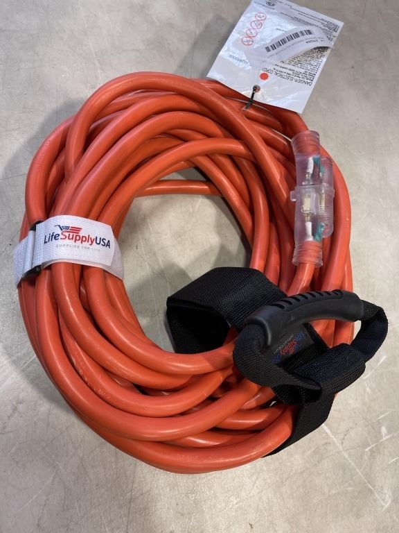 NEW ORANGE INDOOR OUTDOOR 50FT HEAVY DUTY LIGHTED EXTENSION CORD, 10AWG, 3 WIRE