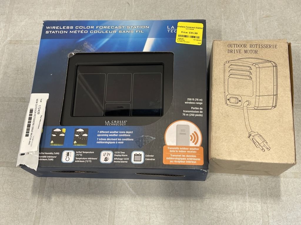 NEW OUTDOOR ROTISSERIE DRIVE MOTOR AND WEATHER STATION