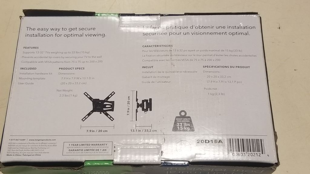 NEW OVERSTOCK INSIGNIA 13-32 INCH FULL MOTION TV WALL MOUNT