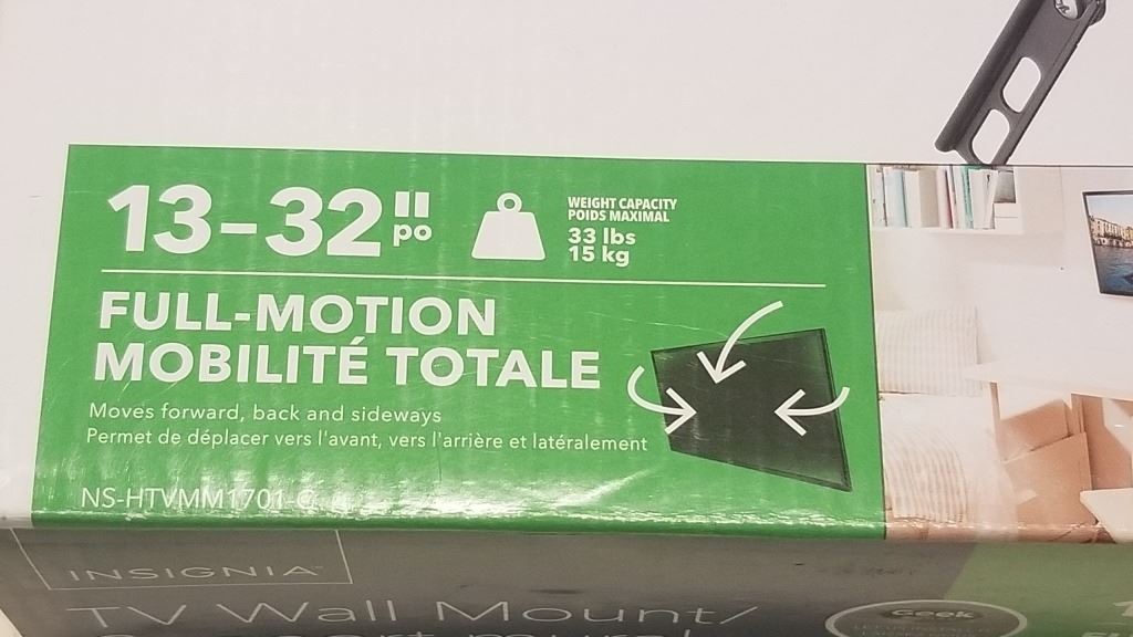 NEW OVERSTOCK INSIGNIA 13-32 INCH FULL MOTION TV WALL MOUNT