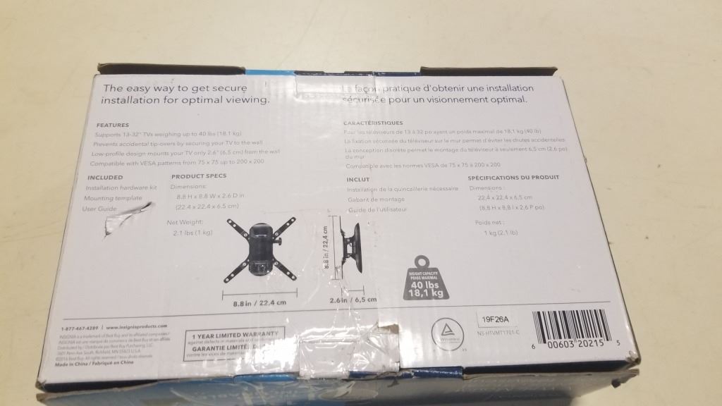 NEW OVERSTOCK INSIGNIA 13-32 INCH TILTING TV WALL MOUNT
