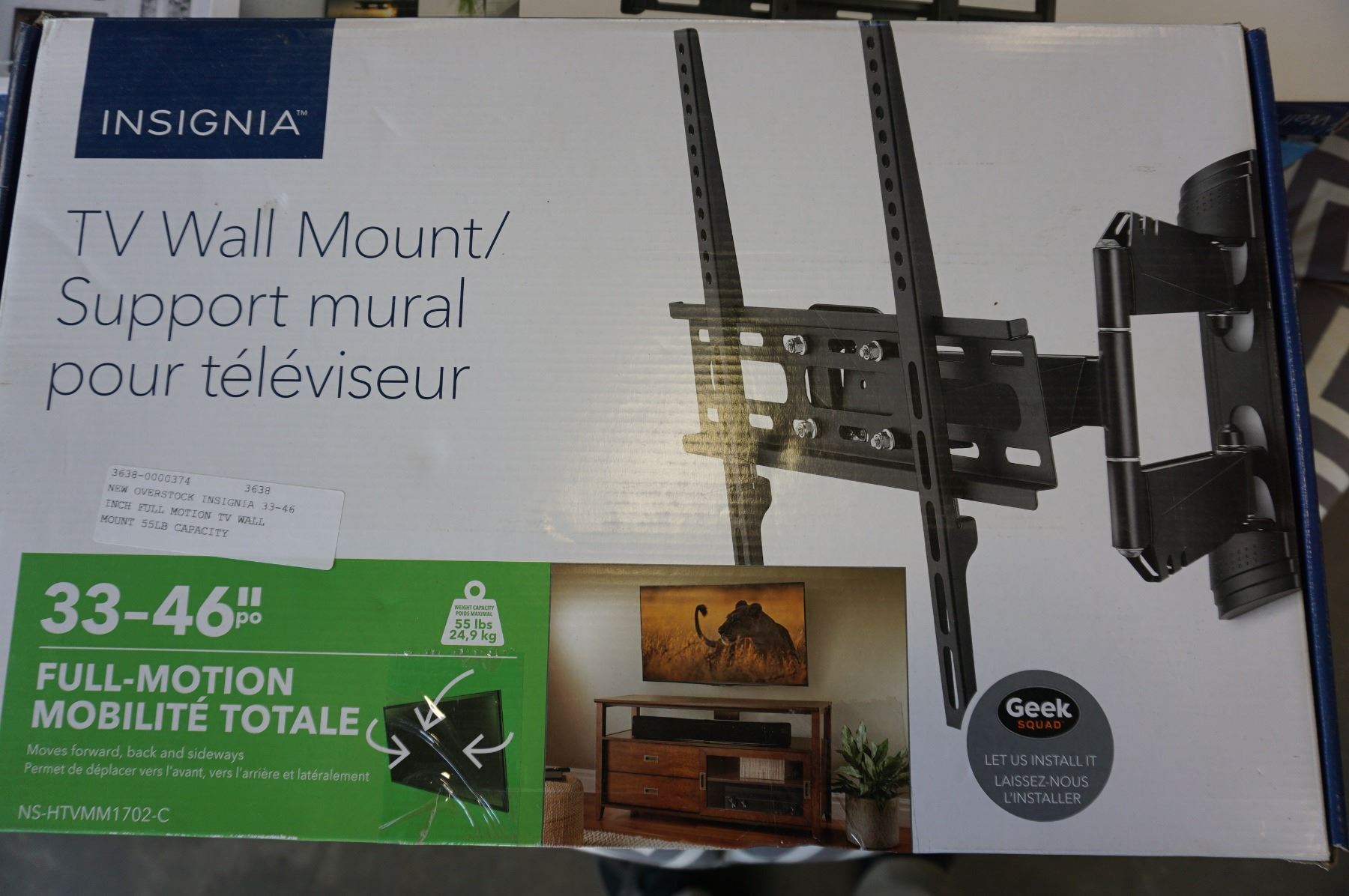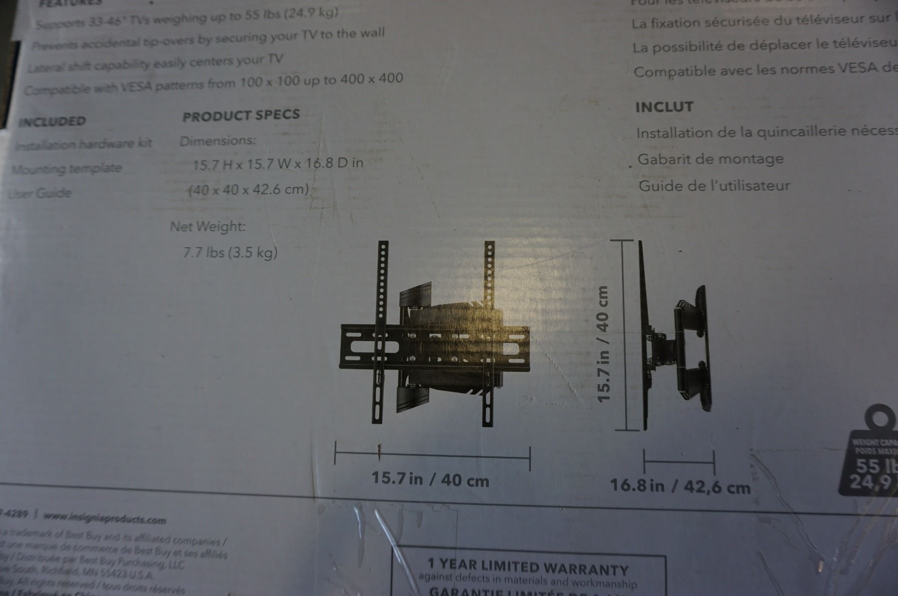 NEW OVERSTOCK INSIGNIA 33-46 INCH FULL MOTION TV WALL MOUNT 55LB CAPACITY