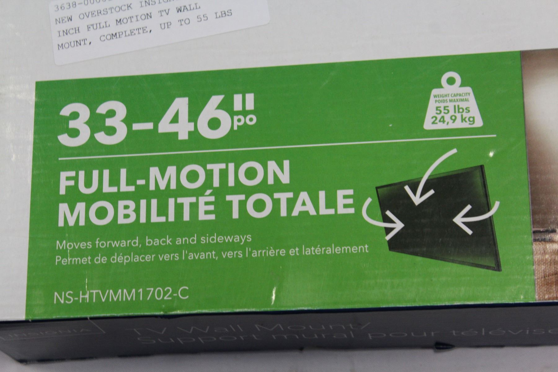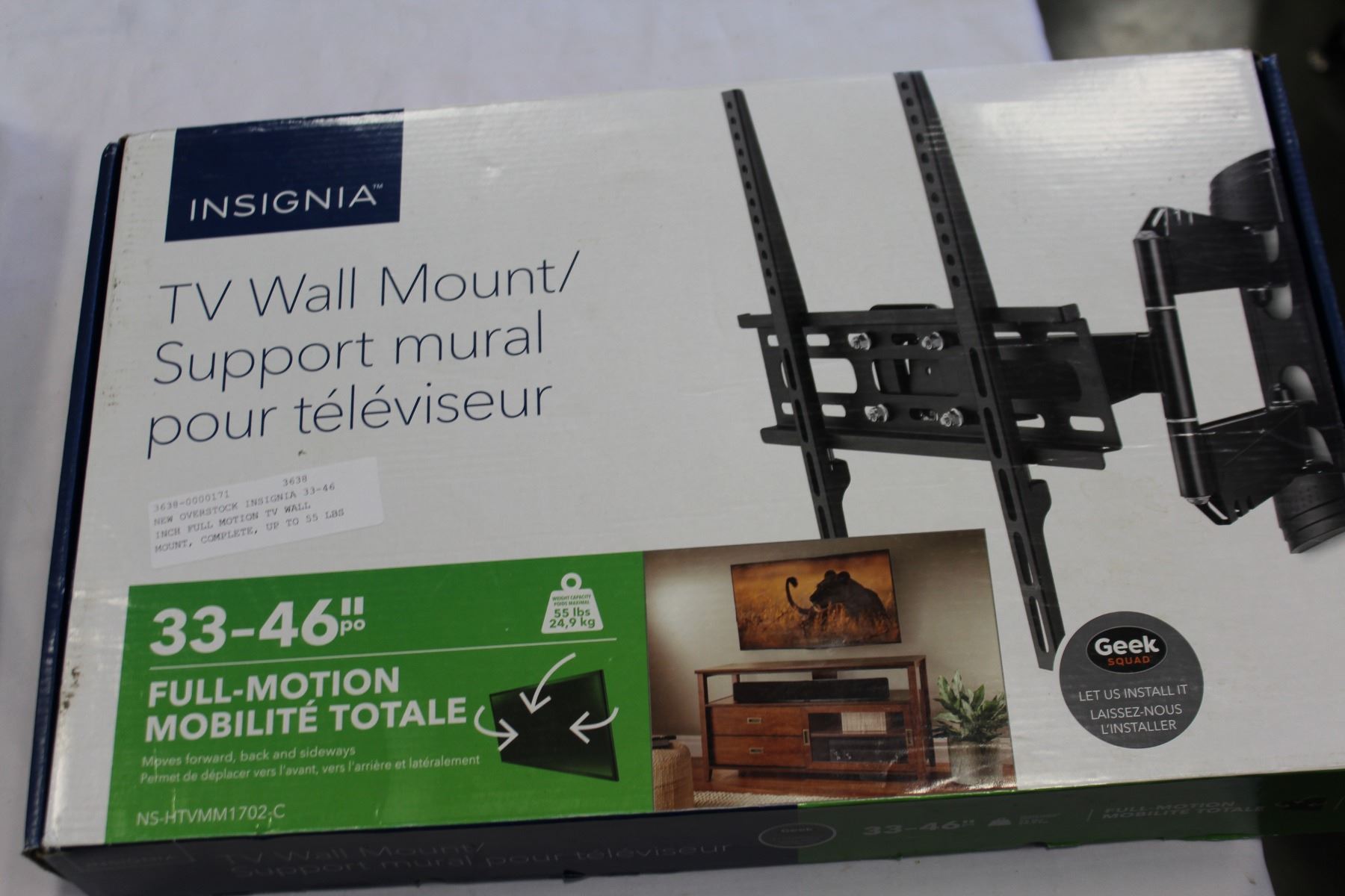 NEW OVERSTOCK INSIGNIA 33-46 INCH FULL MOTION TV WALL MOUNT, COMPLETE, UP TO 55 LBS