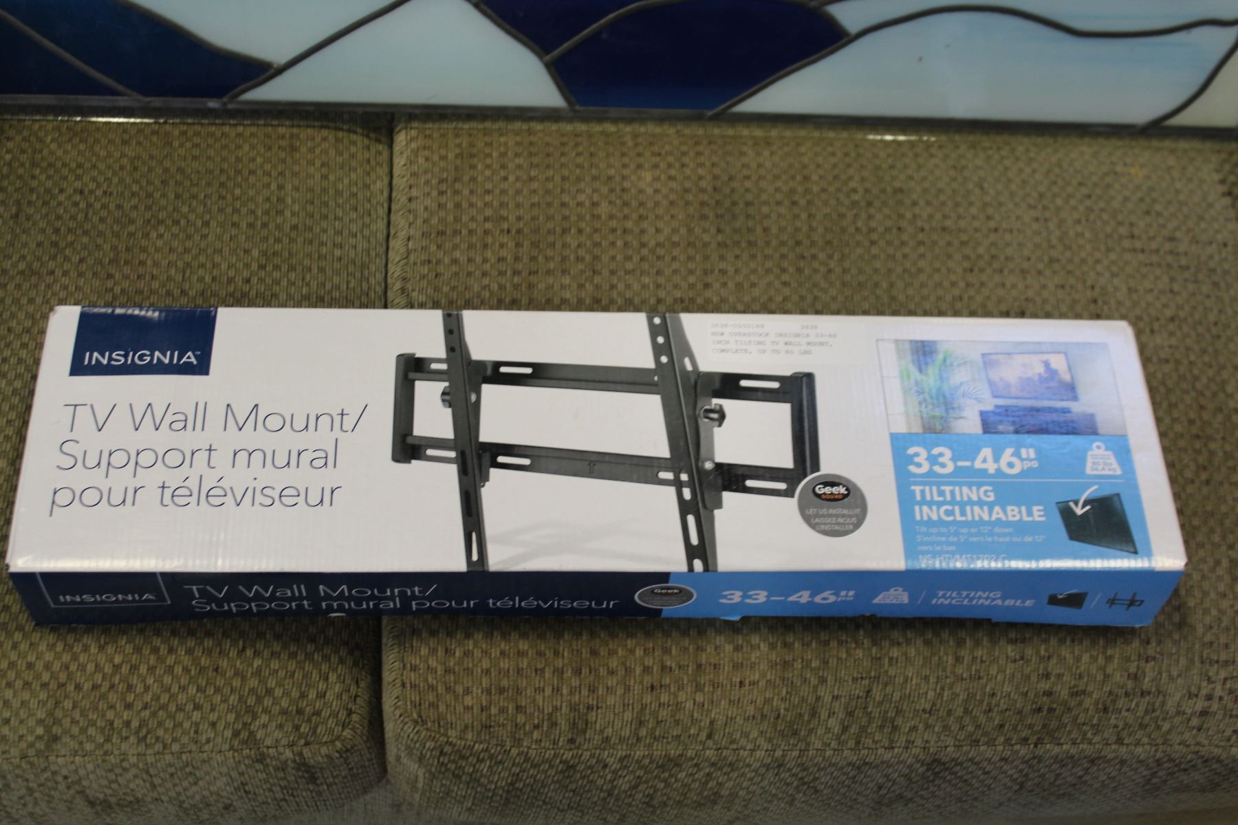 NEW OVERSTOCK INSIGNIA 33-46 INCH TILTING TV WALL MOUNT, COMPLETE, UP TO 80 LBS