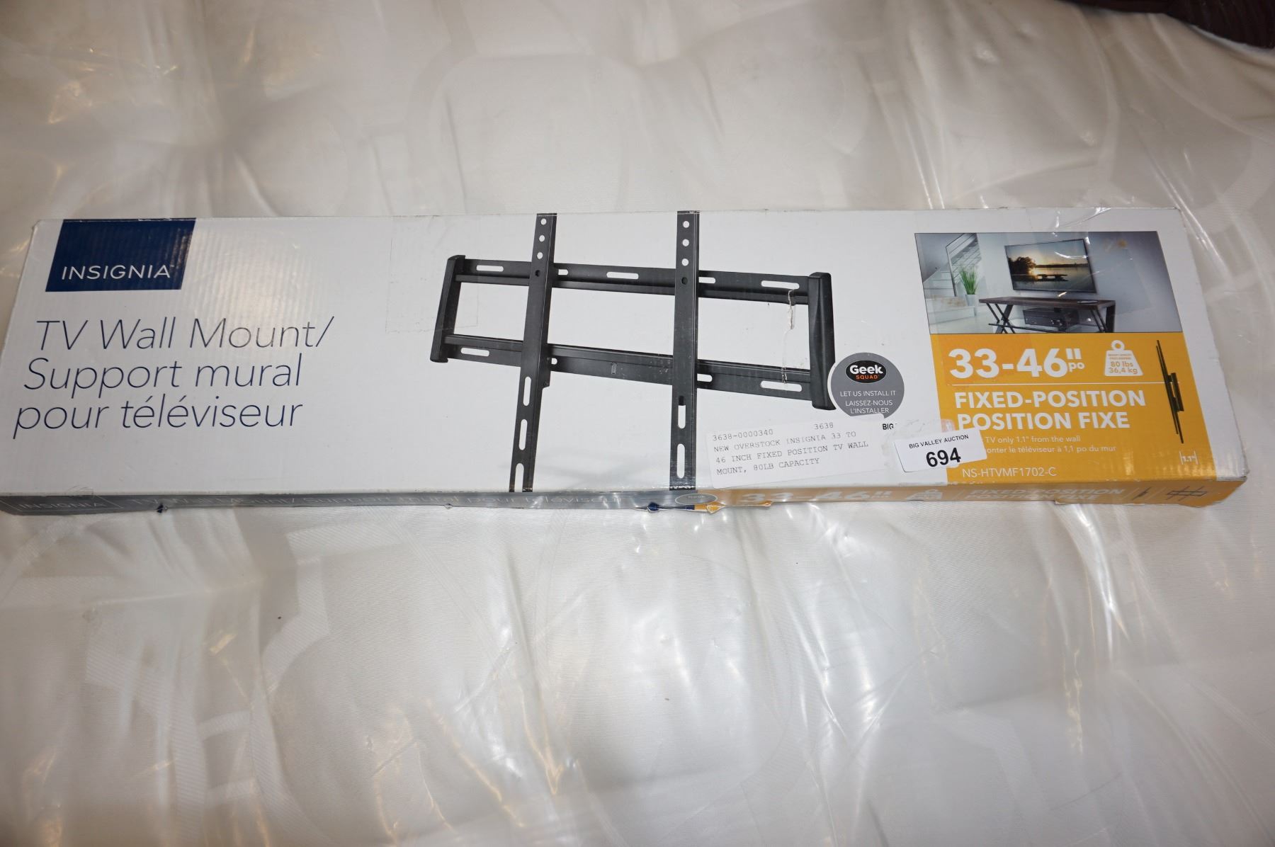 NEW OVERSTOCK INSIGNIA 33 TO 46 INCH FIXED POSITION TV WALL MOUNT, 80LB CAPACITY