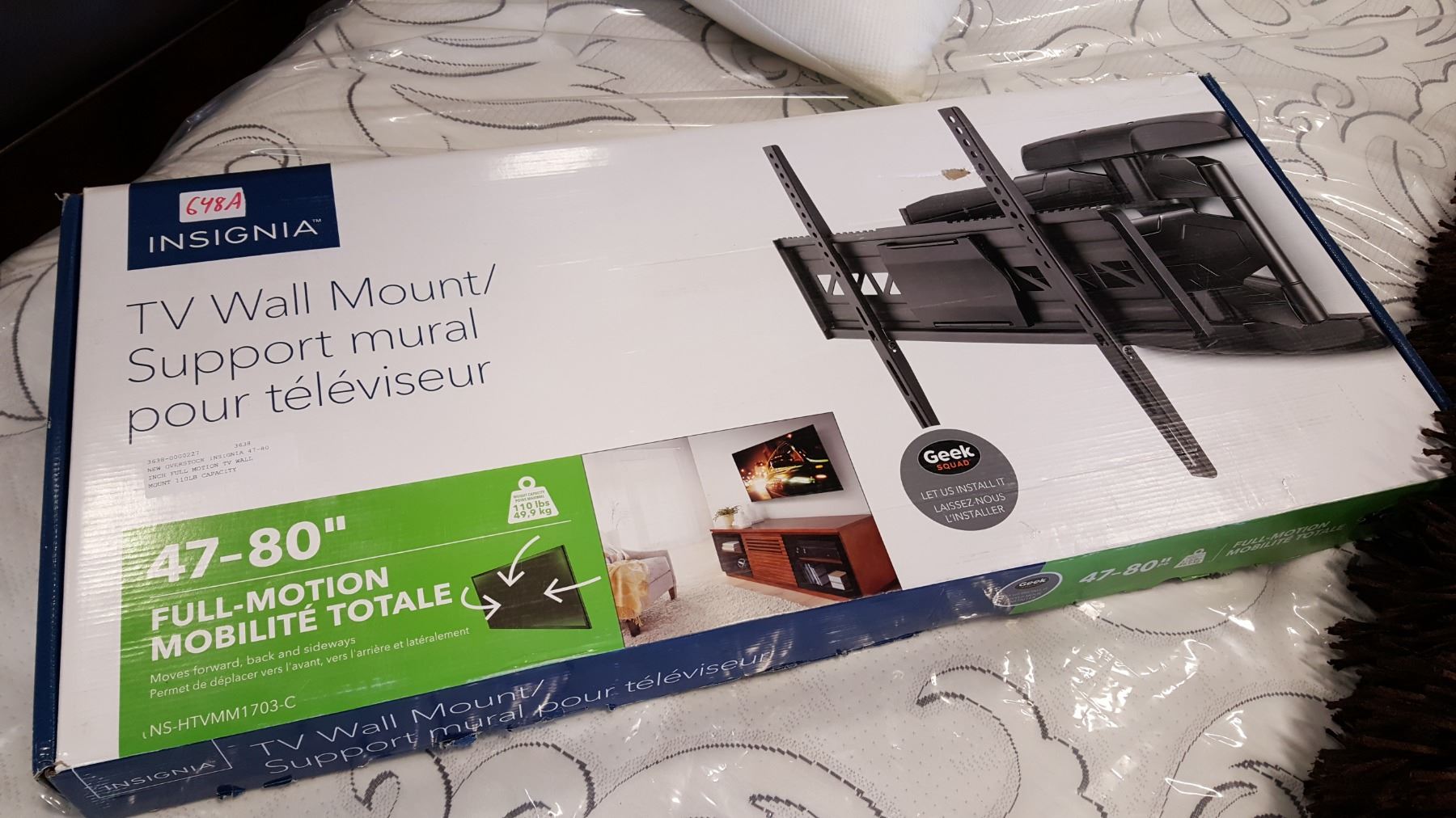 NEW OVERSTOCK INSIGNIA 47-80 INCH FULL MOTION TV WALL MOUNT 110LB CAPACITY