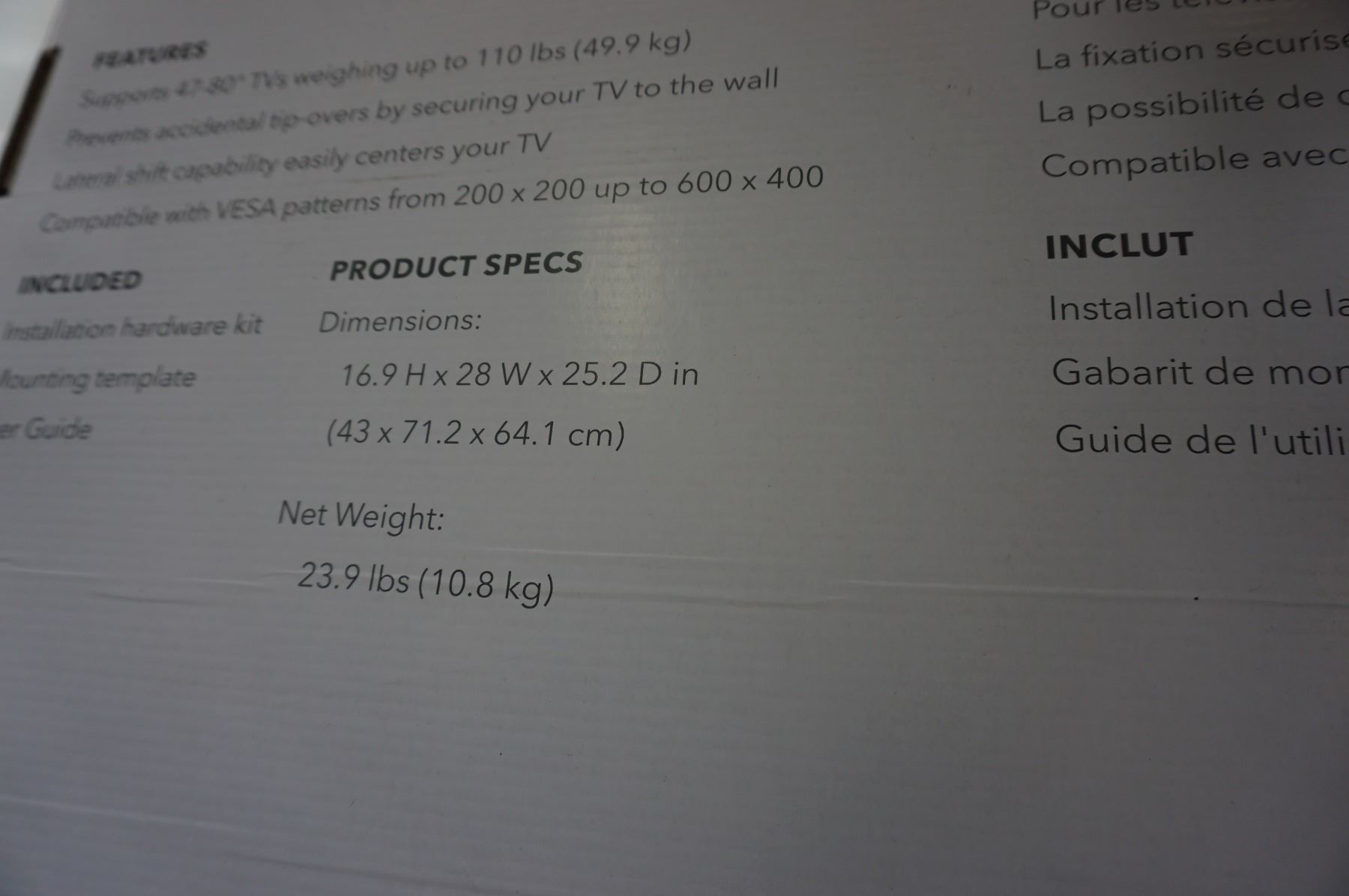 NEW OVERSTOCK INSIGNIA 47-80 INCH FULL MOTION TV WALL MOUNT 110LB CAPACITY