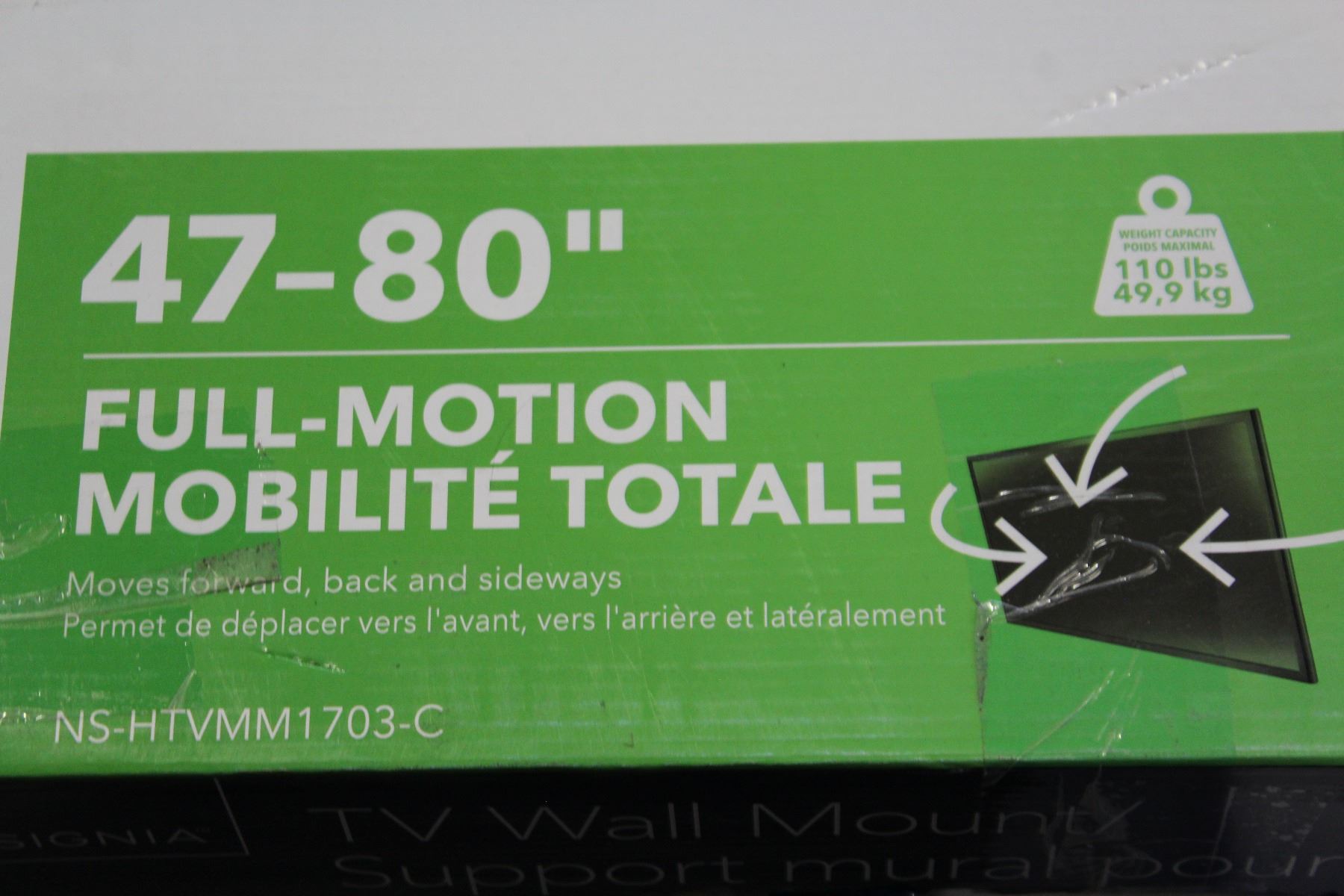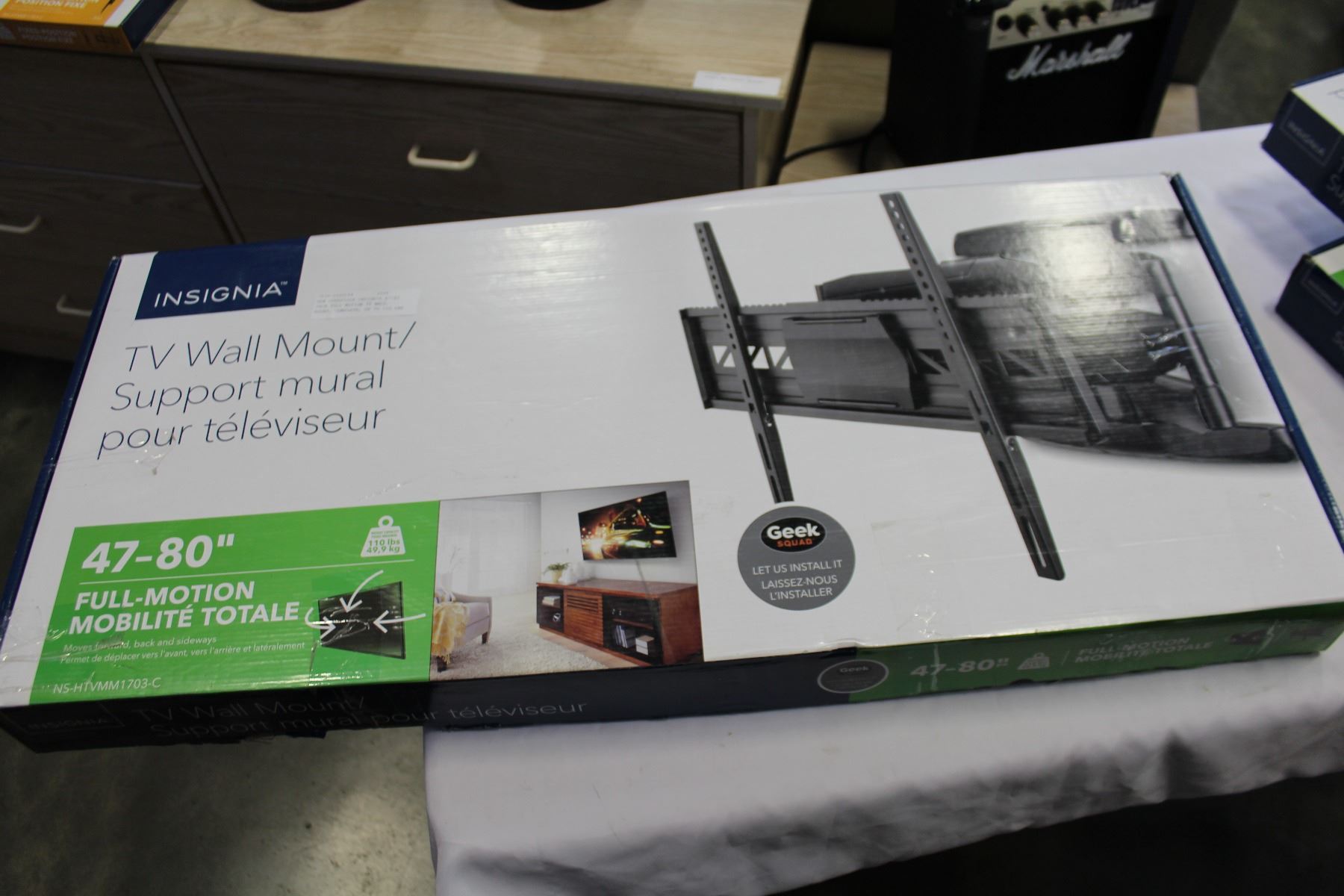 NEW OVERSTOCK INSIGNIA 47-80 INCH FULL MOTION TV WALL MOUNT, COMPLETE, UP TO 110 LBS