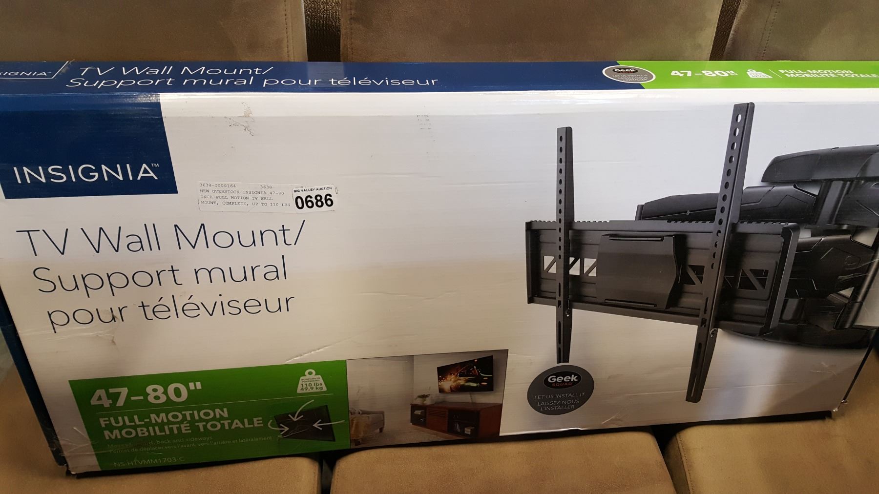 NEW OVERSTOCK INSIGNIA 47-80 INCH FULL MOTION TV WALL MOUNT, COMPLETE, UP TO 110 LBS