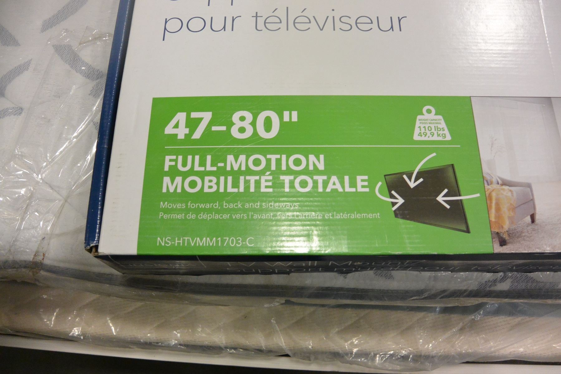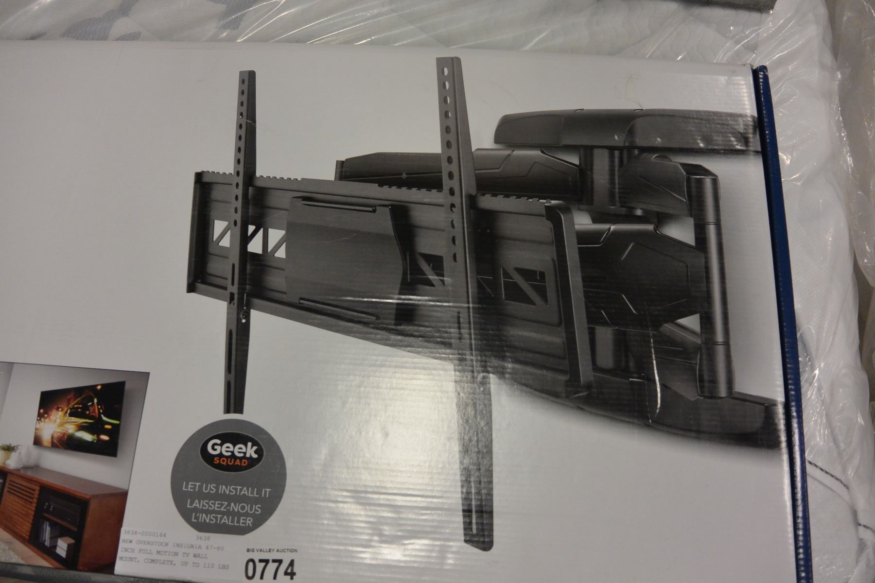 NEW OVERSTOCK INSIGNIA 47-80 INCH FULL MOTION TV WALL MOUNT, COMPLETE, UP TO 110 LBS