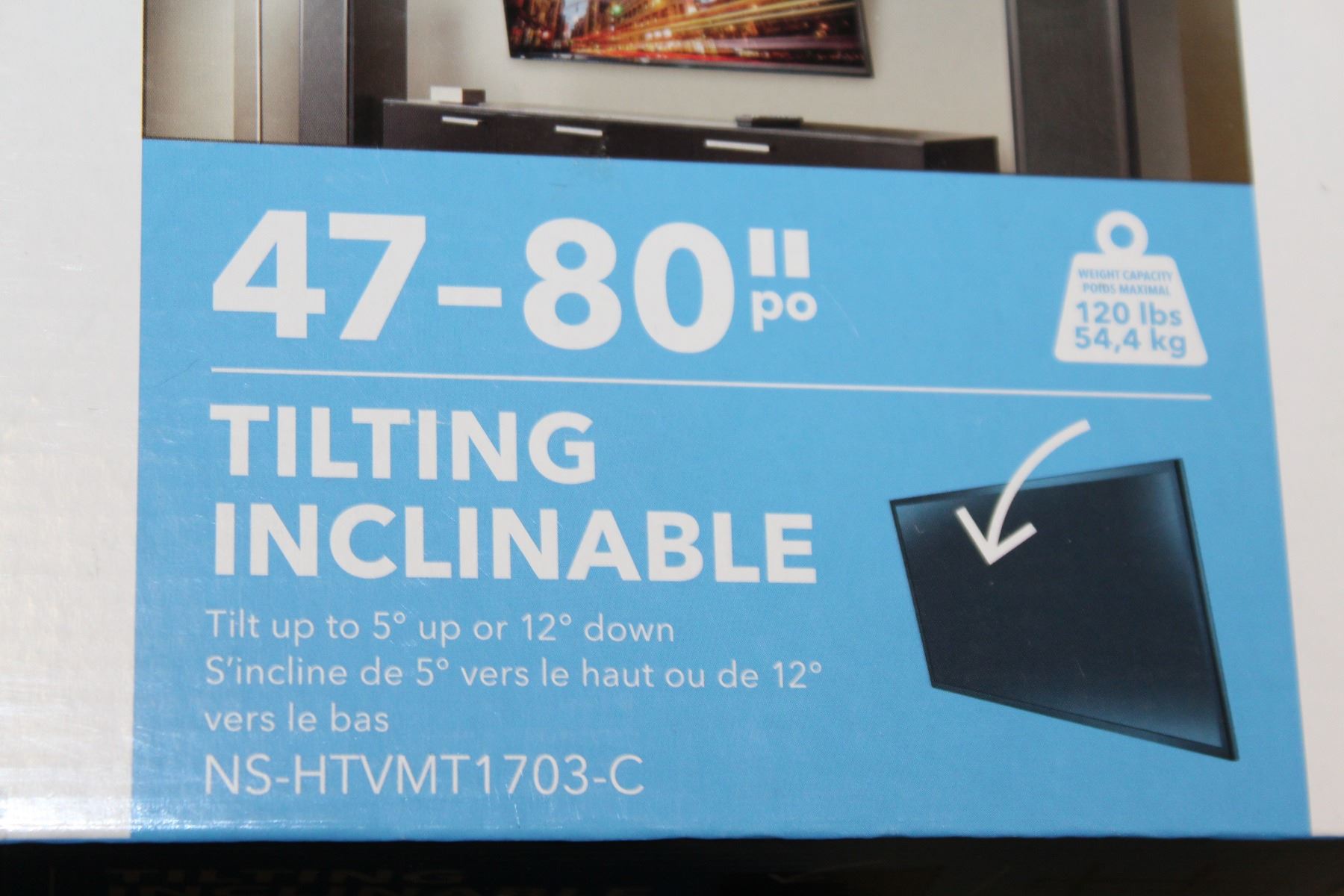NEW OVERSTOCK INSIGNIA 47-80 INCH TILTING TV WALL MOUNT, COMPLETE, UP TO 120 LBS