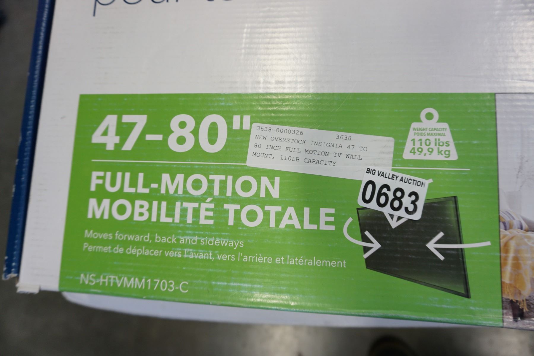 NEW OVERSTOCK INSIGNIA 47 TO 80 INCH FULL MOTION TV WALL MOUNT, 110LB CAPACITY