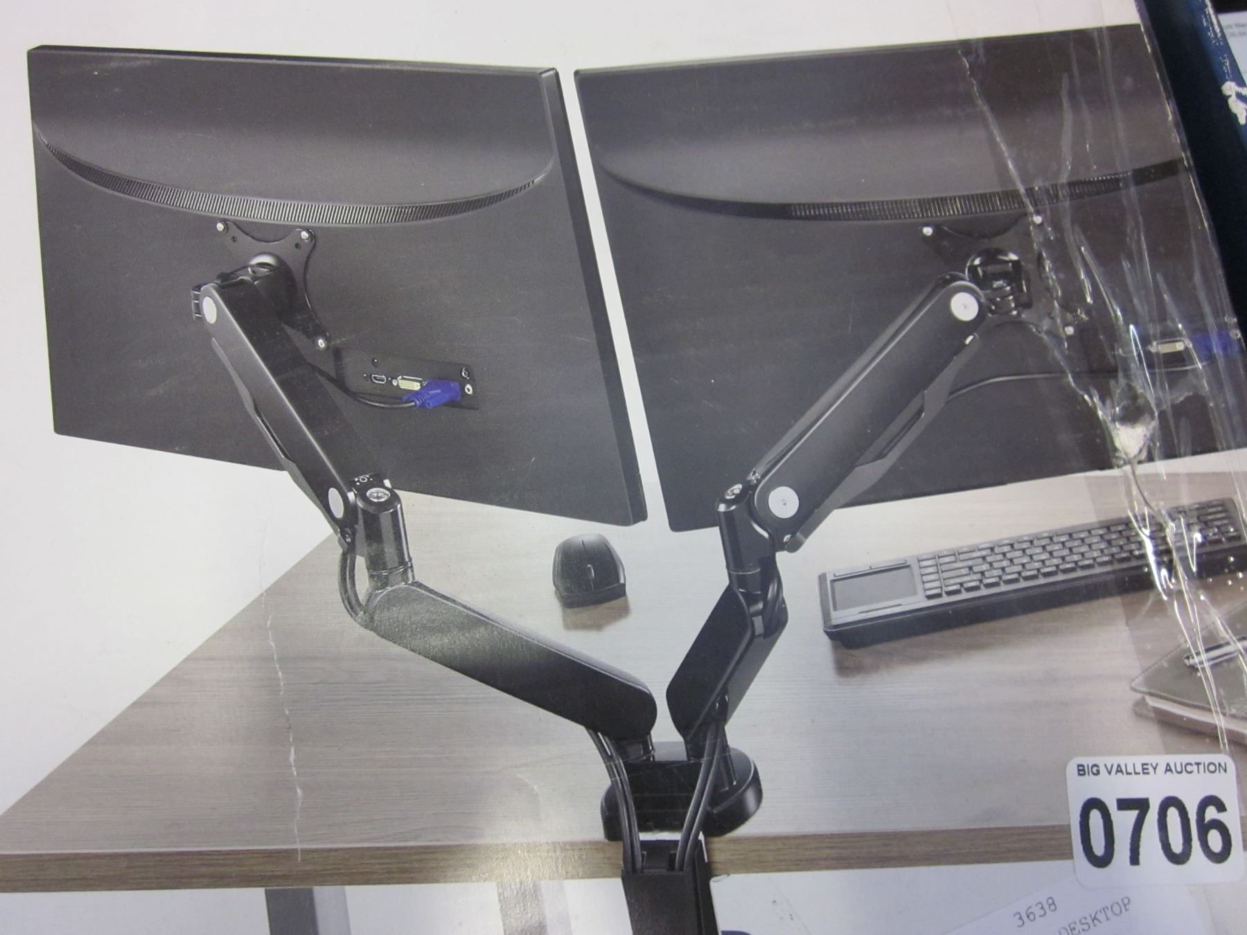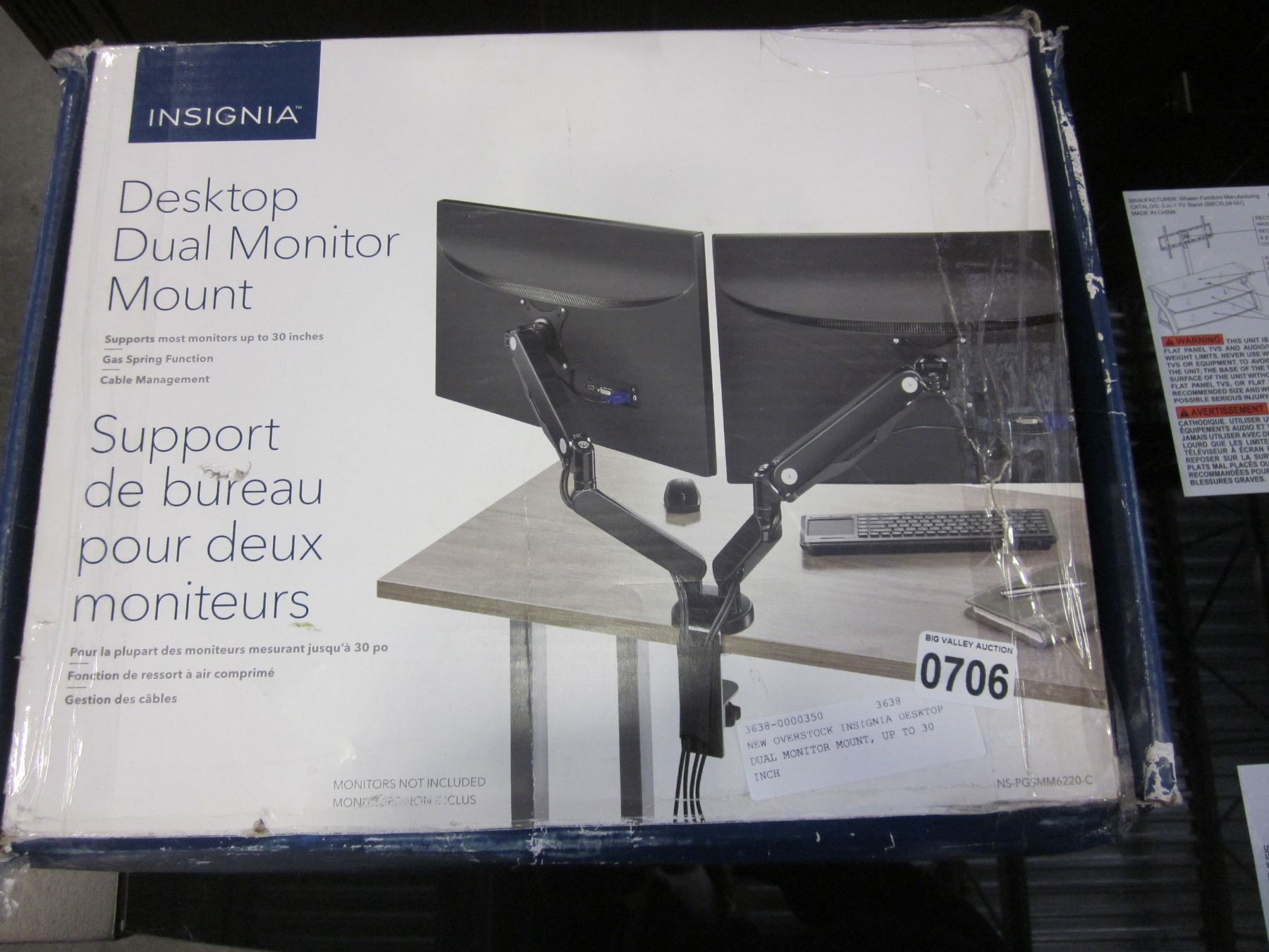 NEW OVERSTOCK INSIGNIA DESKTOP DUAL MONITOR MOUNT, UP TO 30 INCH
