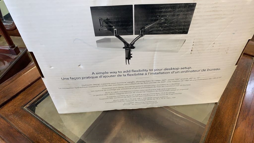 NEW OVERSTOCK INSIGNIA DUAL MONITOR HYDRAULIC MOUNT - 27 INCH