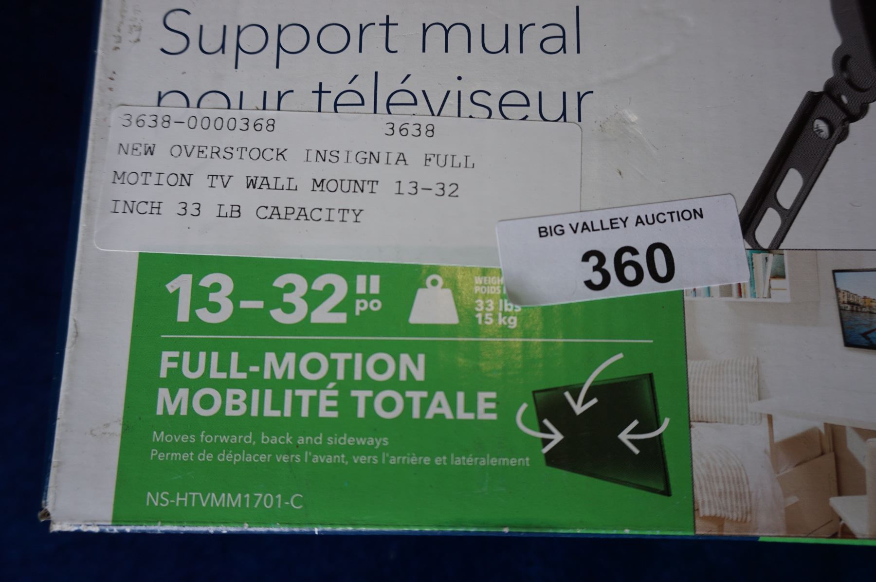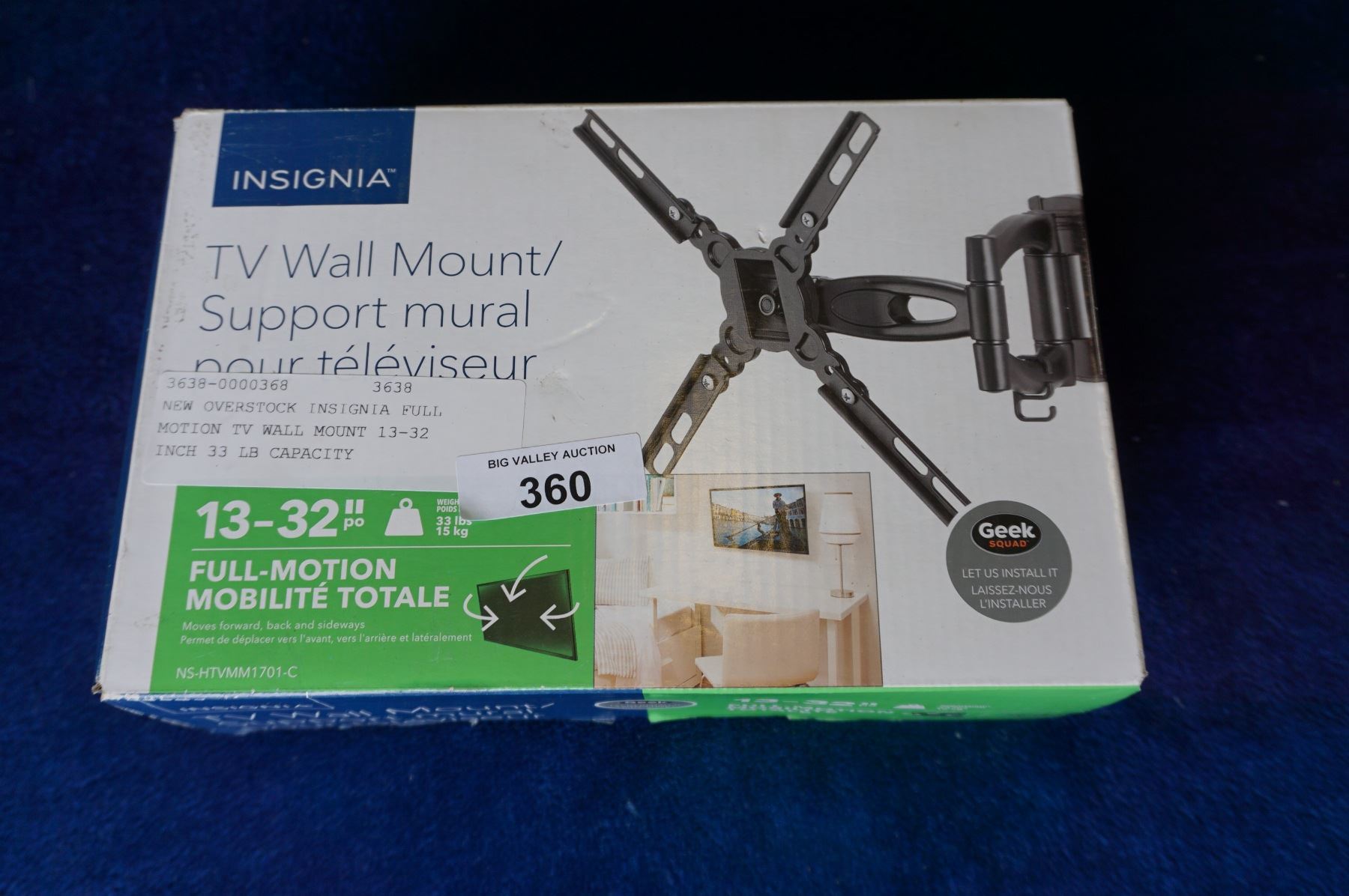 NEW OVERSTOCK INSIGNIA FULL MOTION TV WALL MOUNT 13-32 INCH 33 LB CAPACITY
