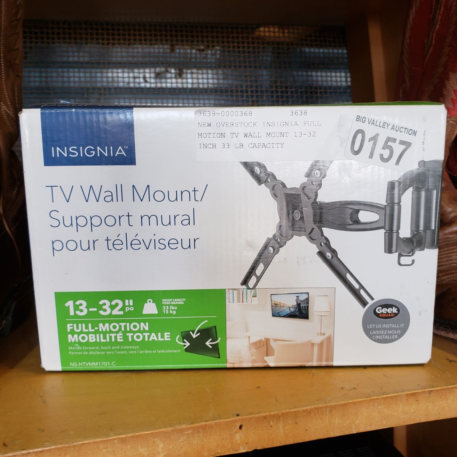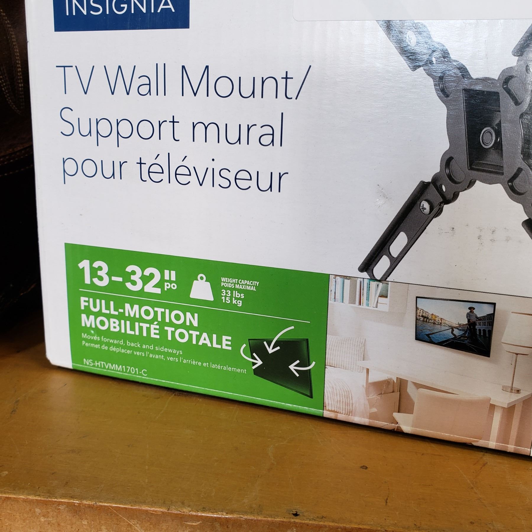 NEW OVERSTOCK INSIGNIA FULL MOTION TV WALL MOUNT 13-32 INCH 33 LB CAPACITY