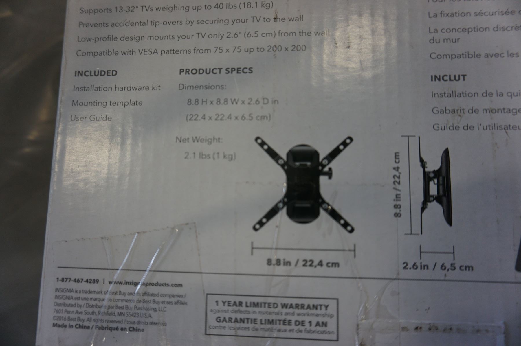 NEW OVERSTOCK INSIGNIA TILTING 13-32 INCH TV WALL MOUNT 40 LB CAPACITY
