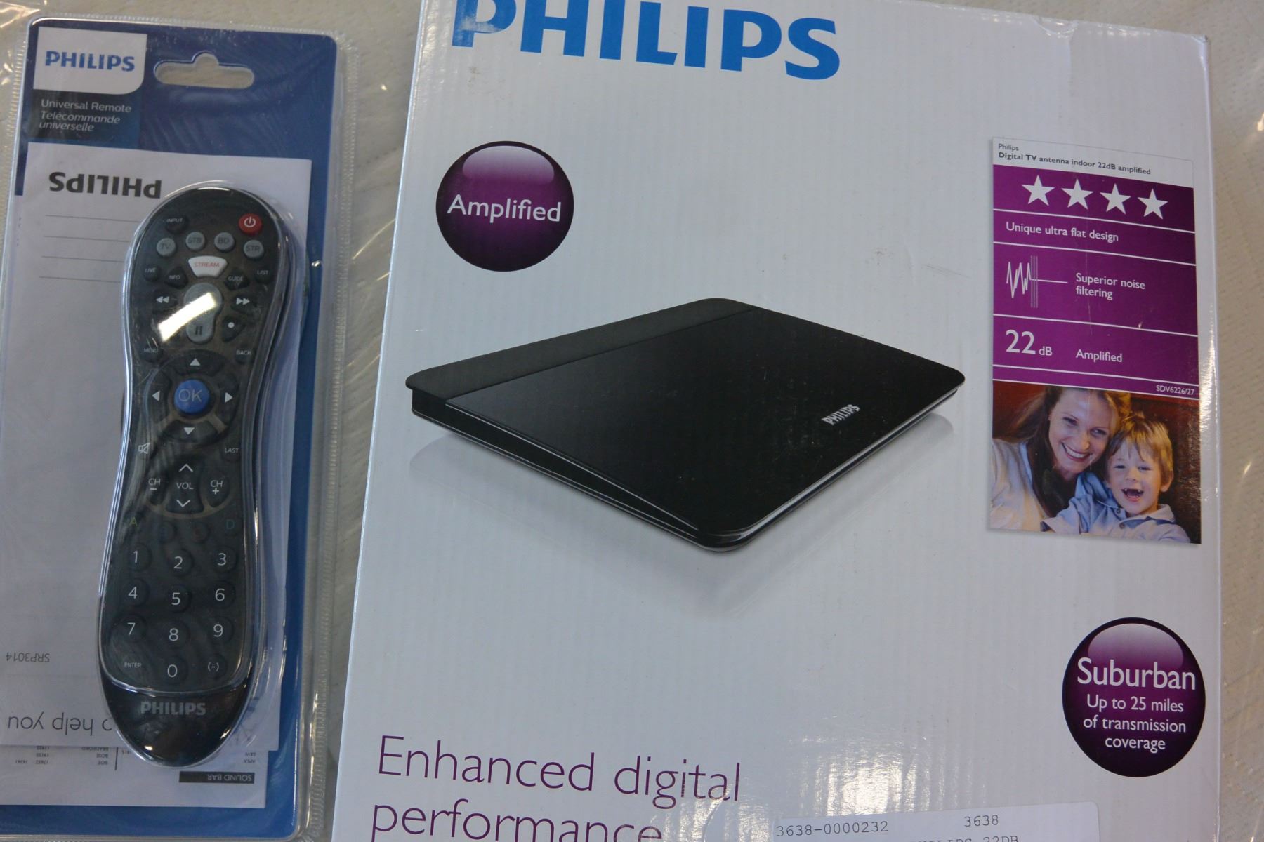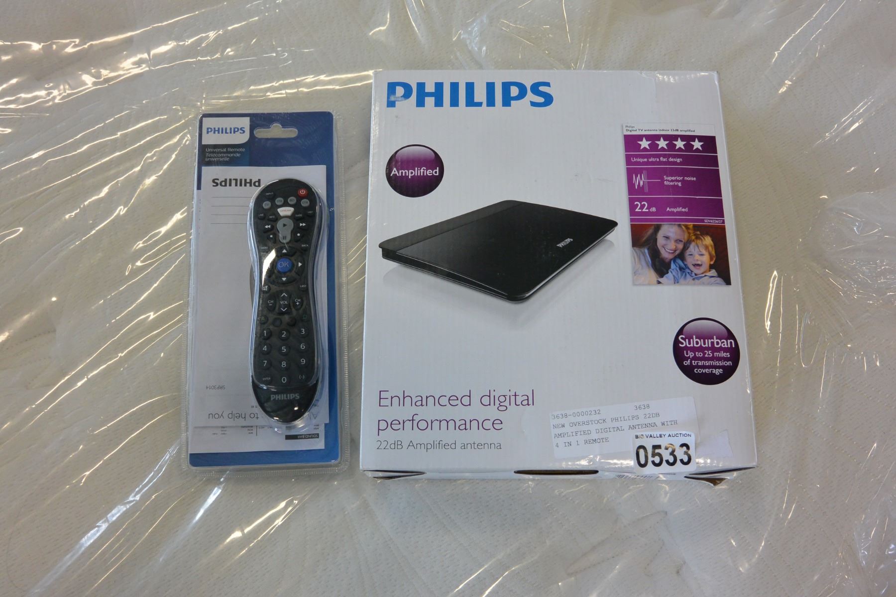 NEW OVERSTOCK PHILIPS 22DB AMPLIFIED DIGITAL ANTENNA WITH 4 IN 1 REMOTE