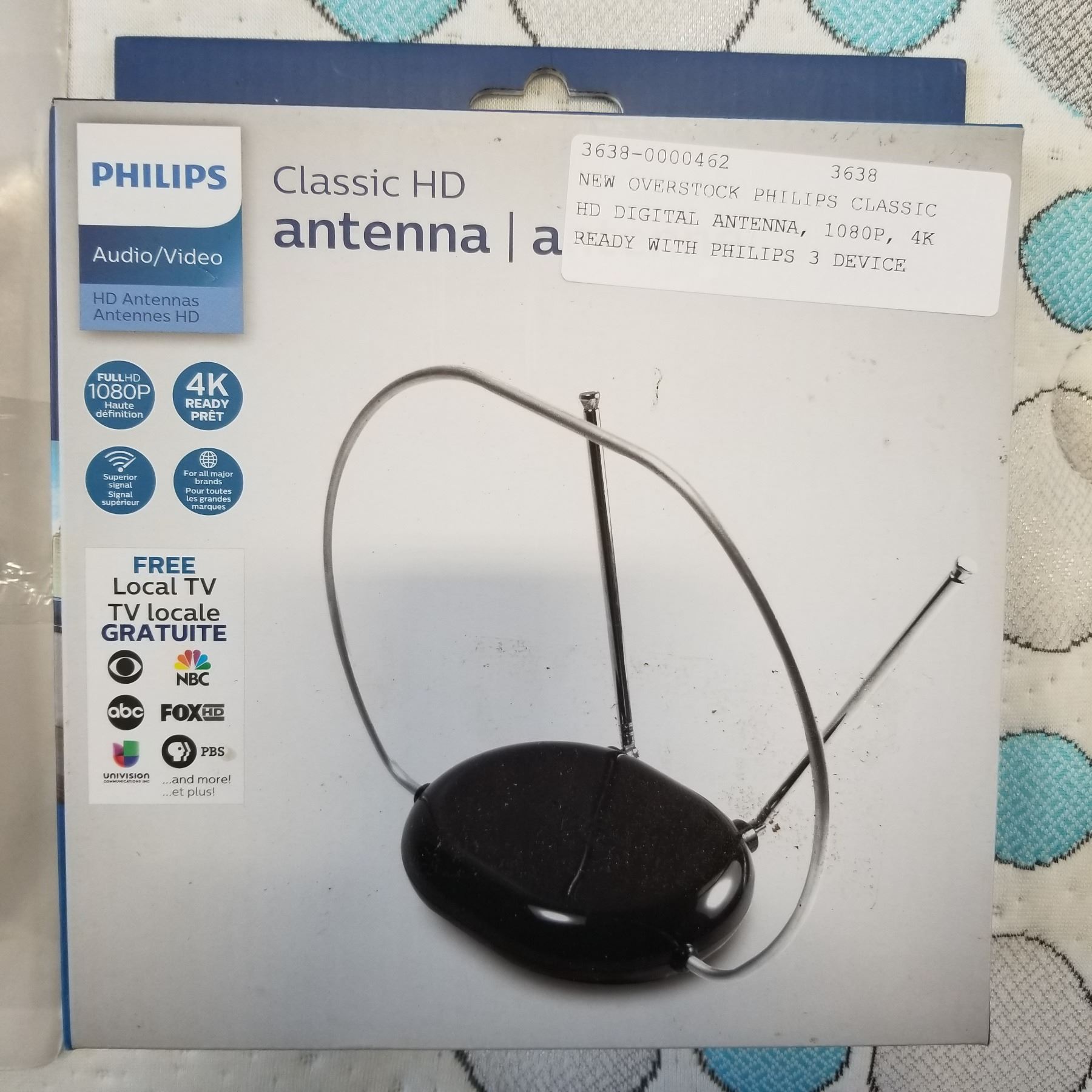 NEW OVERSTOCK PHILIPS CLASSIC HD DIGITAL ANTENNA, 1080P, 4K READY WITH PHILIPS 3 DEVICE UNIVERSAL RE