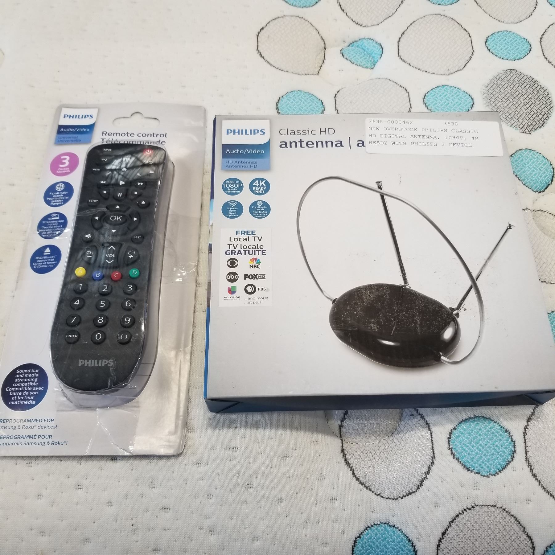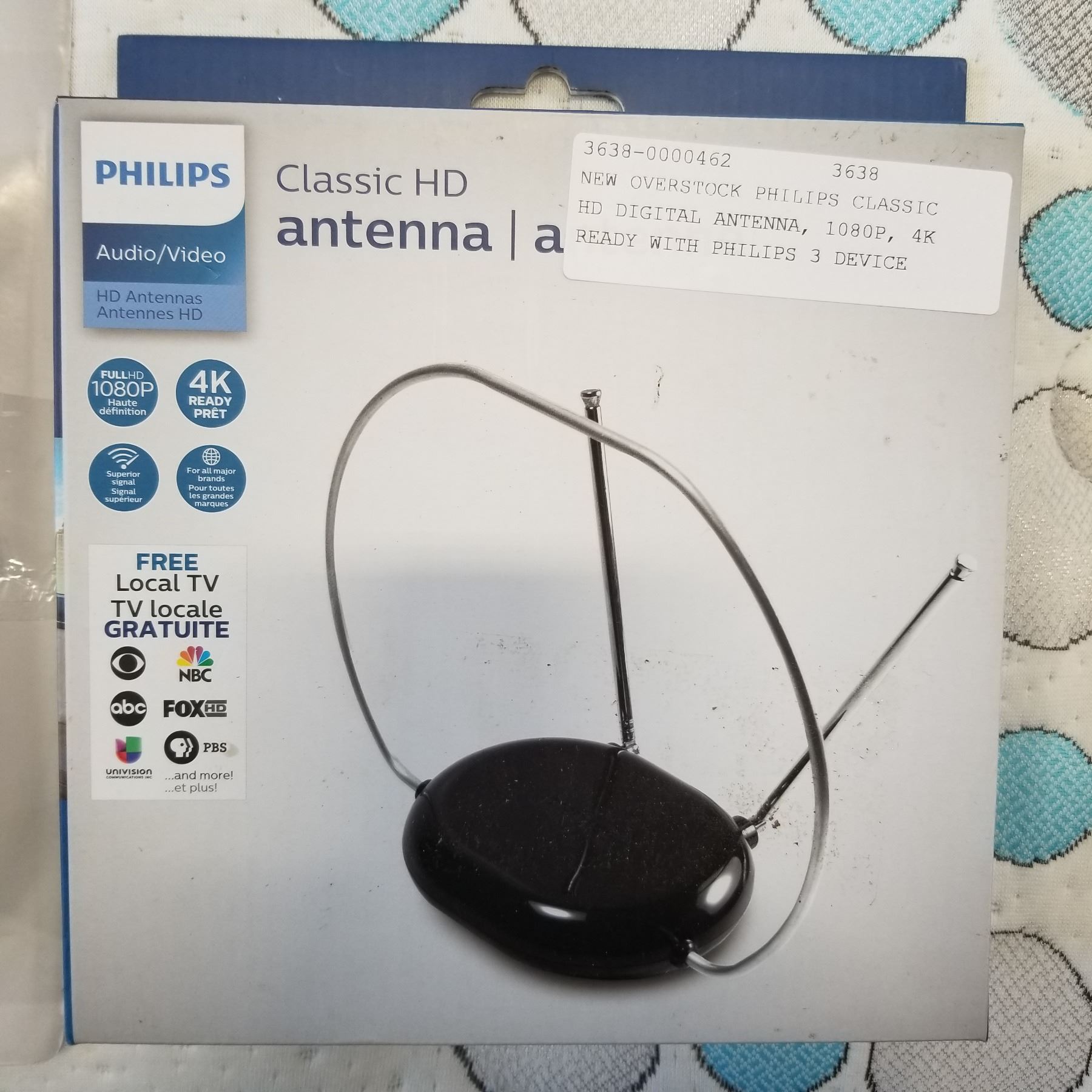 NEW OVERSTOCK PHILIPS CLASSIC HD DIGITAL ANTENNA, 1080P, 4K READY WITH PHILIPS 3 DEVICE UNIVERSAL RE