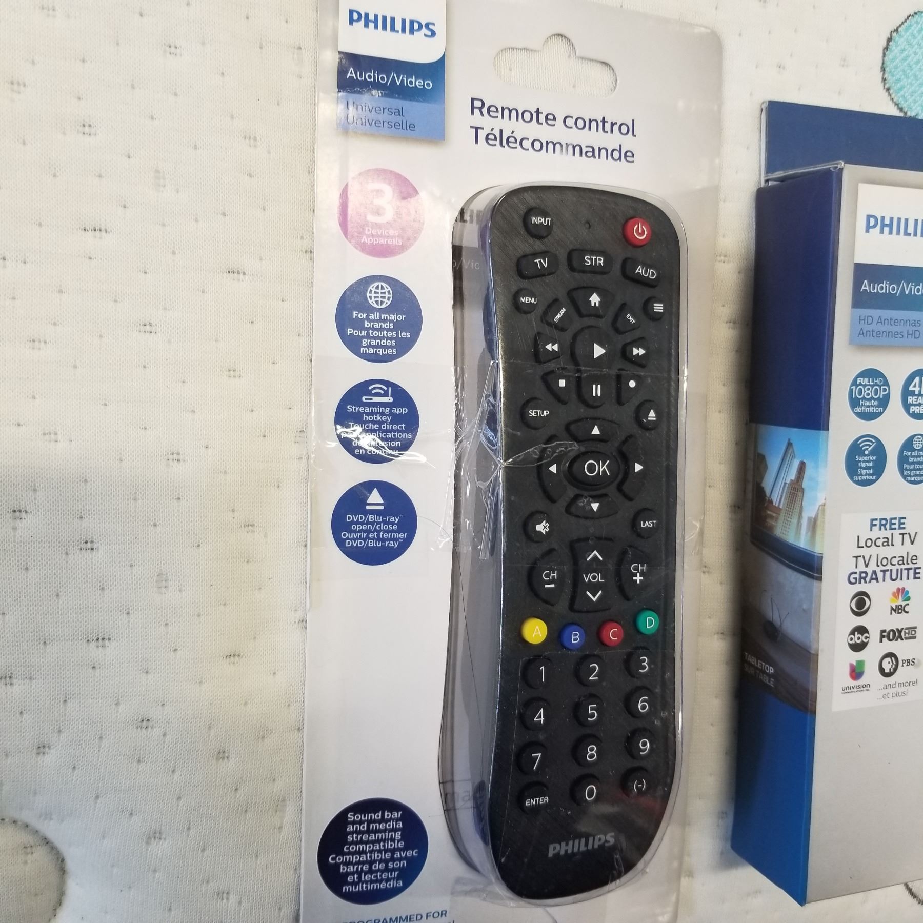 NEW OVERSTOCK PHILIPS CLASSIC HD DIGITAL ANTENNA, 1080P, 4K READY WITH PHILIPS 3 DEVICE UNIVERSAL REMOTE