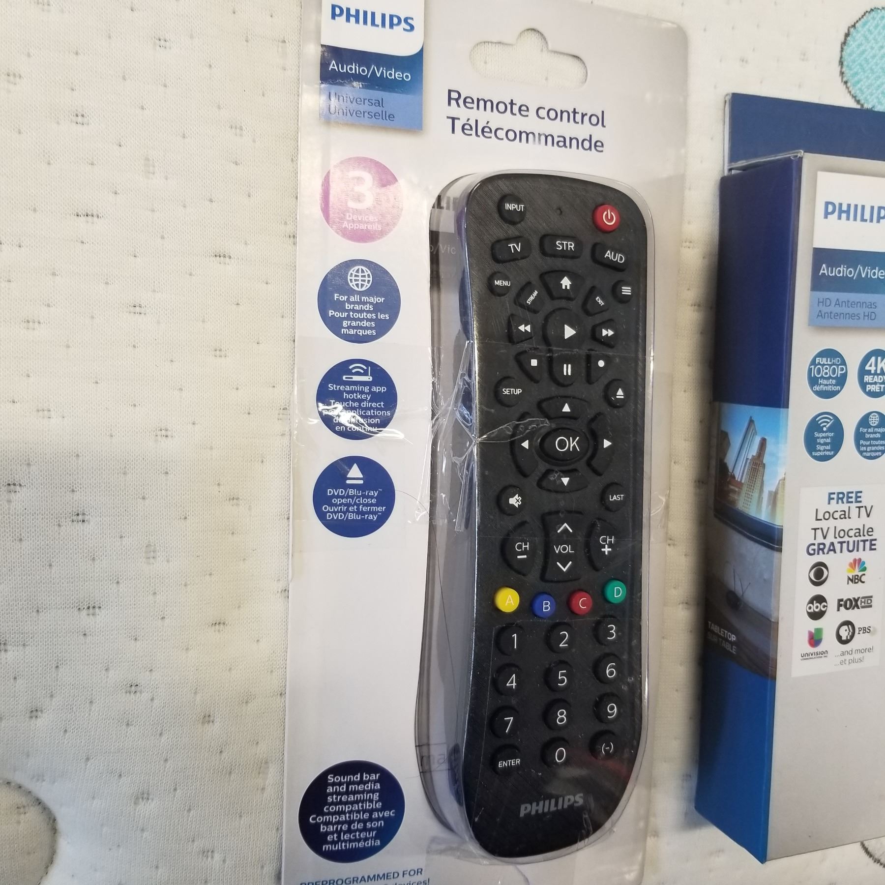 NEW OVERSTOCK PHILIPS CLASSIC HD DIGITAL ANTENNA, 1080P, 4K READY WITH PHILIPS 3 DEVICE UNIVERSAL REMOTE