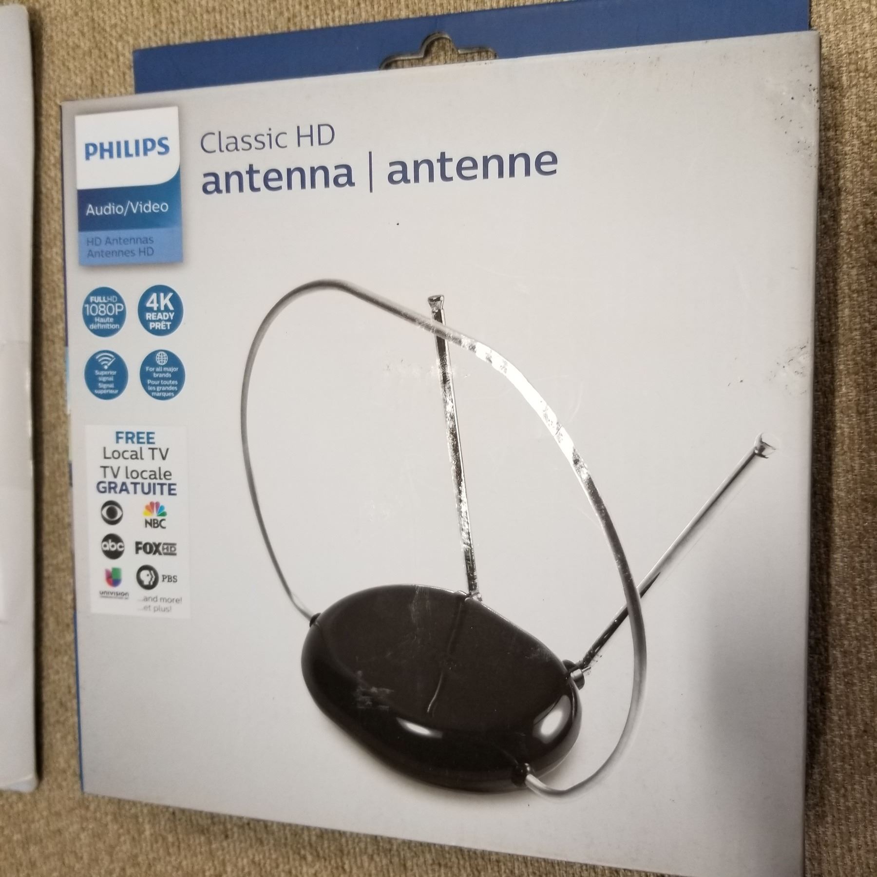 NEW OVERSTOCK PHILIPS CLASSIC HD DIGITAL ANTENNA, 1080P, 4K READY WITH PHILIPS 3 DEVICE UNIVERSAL RE