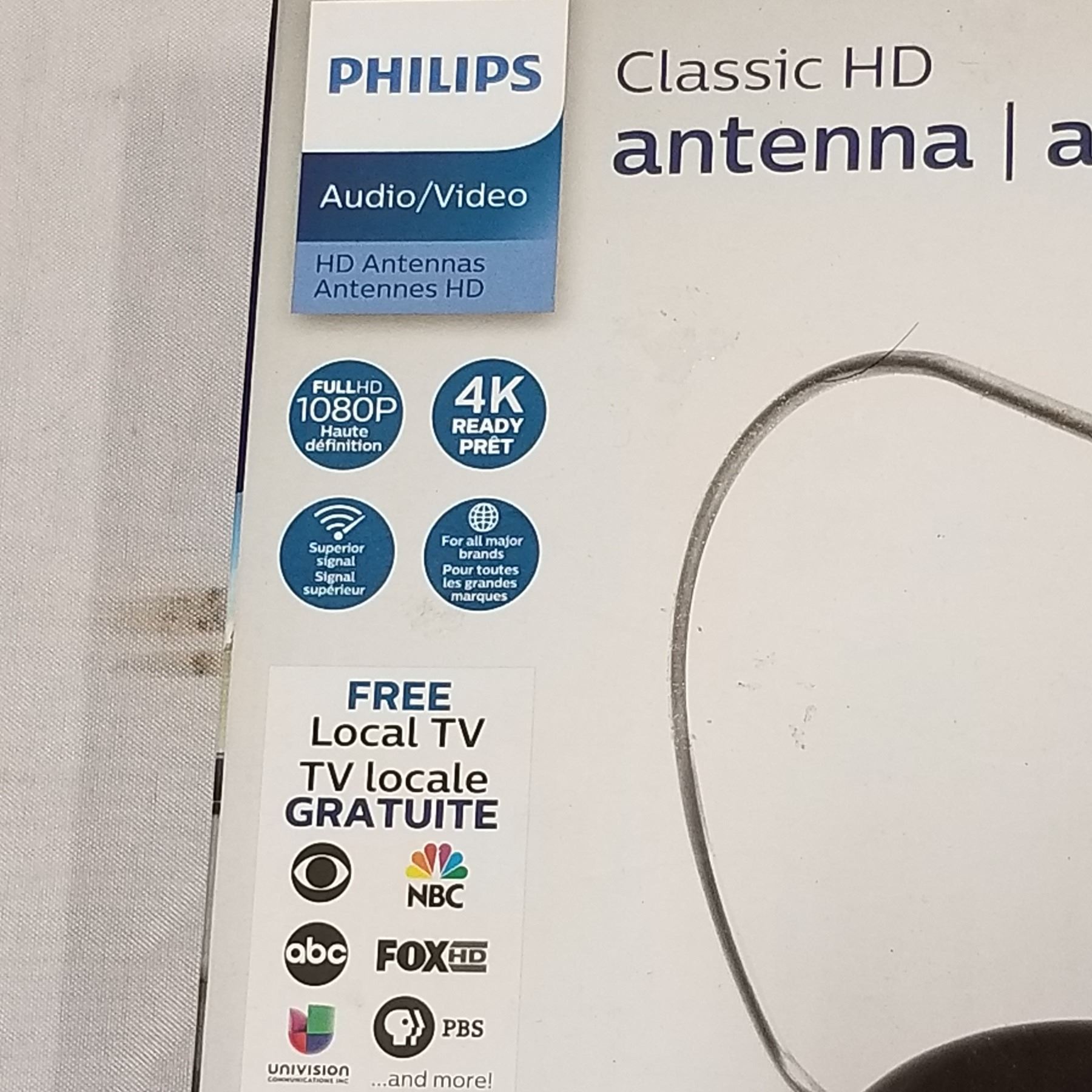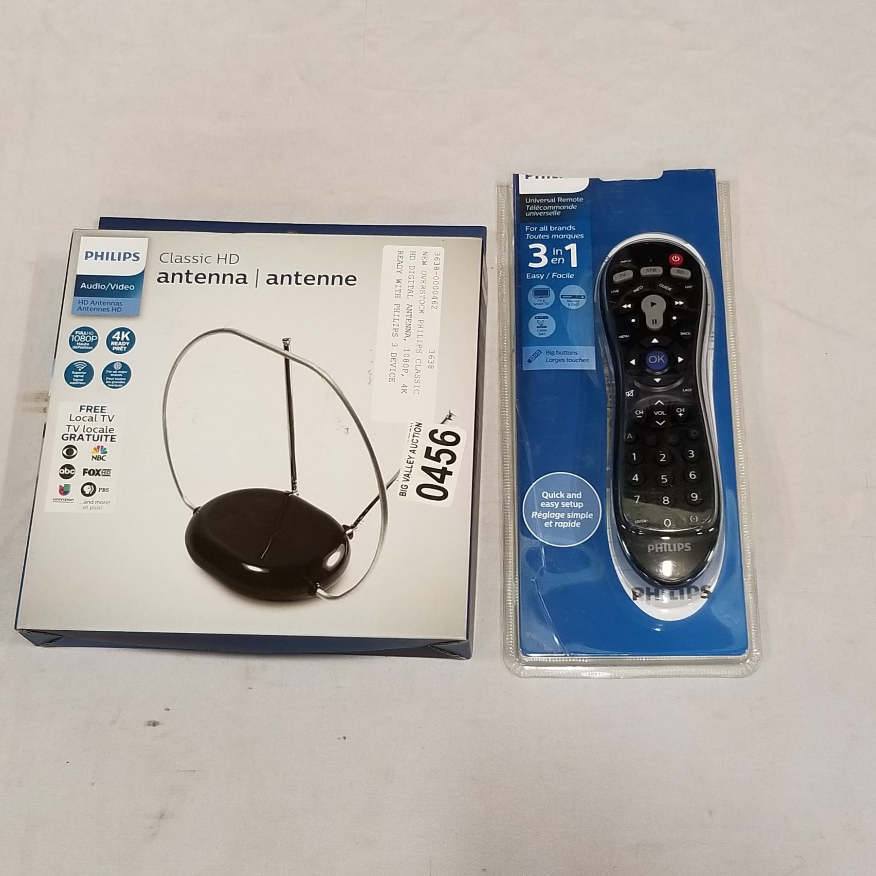 NEW OVERSTOCK PHILIPS CLASSIC HD DIGITAL ANTENNA, 1080P, 4K READY WITH PHILIPS 3 DEVICE UNIVERSAL RE