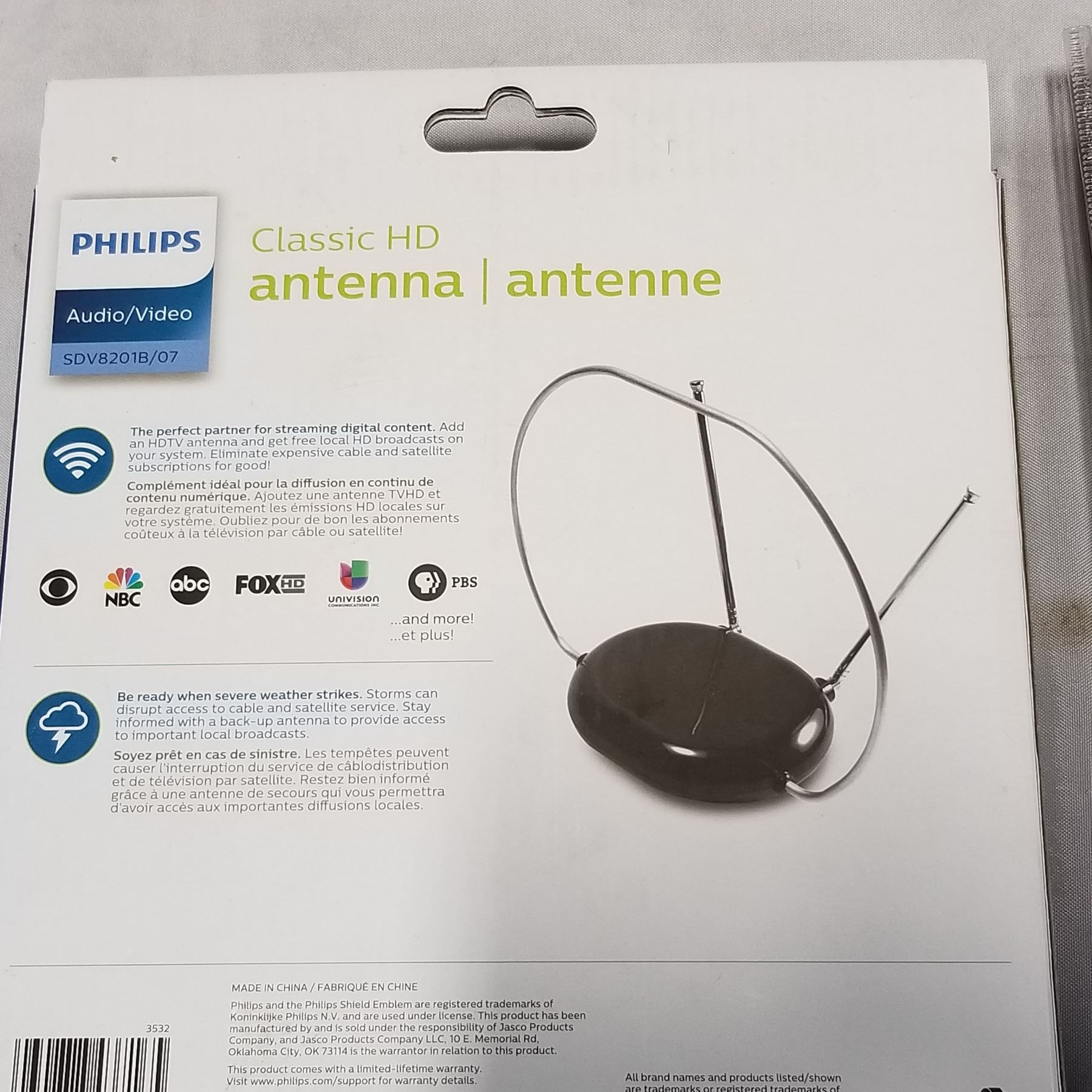 NEW OVERSTOCK PHILIPS CLASSIC HD DIGITAL ANTENNA, 1080P, 4K READY WITH PHILIPS 3 DEVICE UNIVERSAL REMOTE