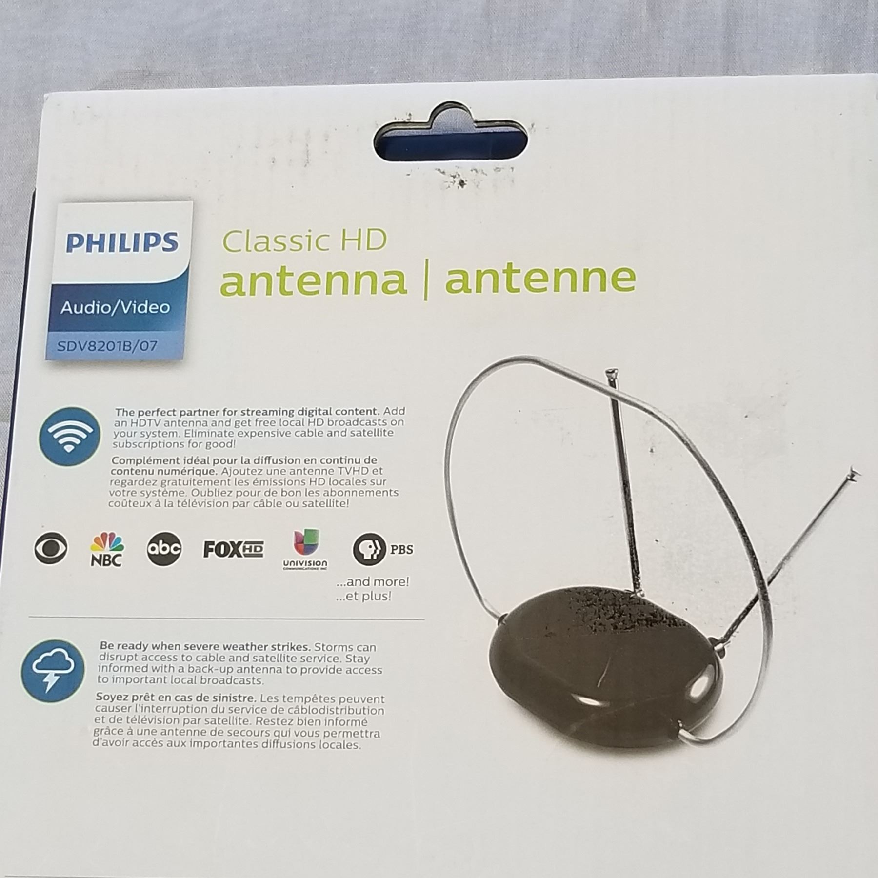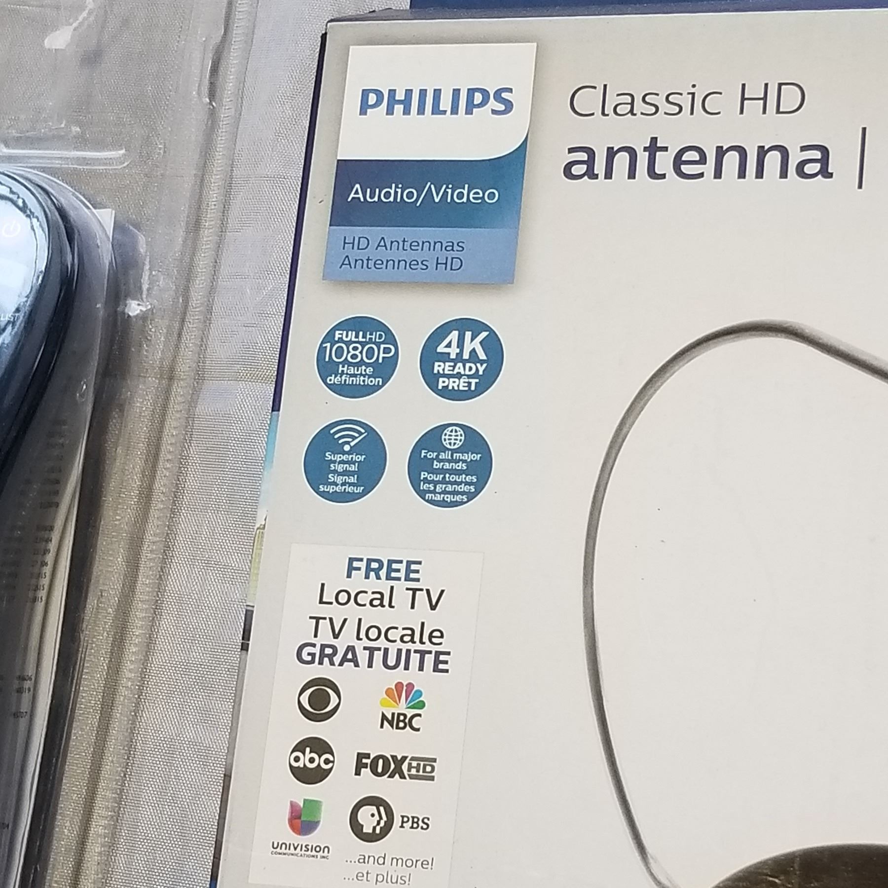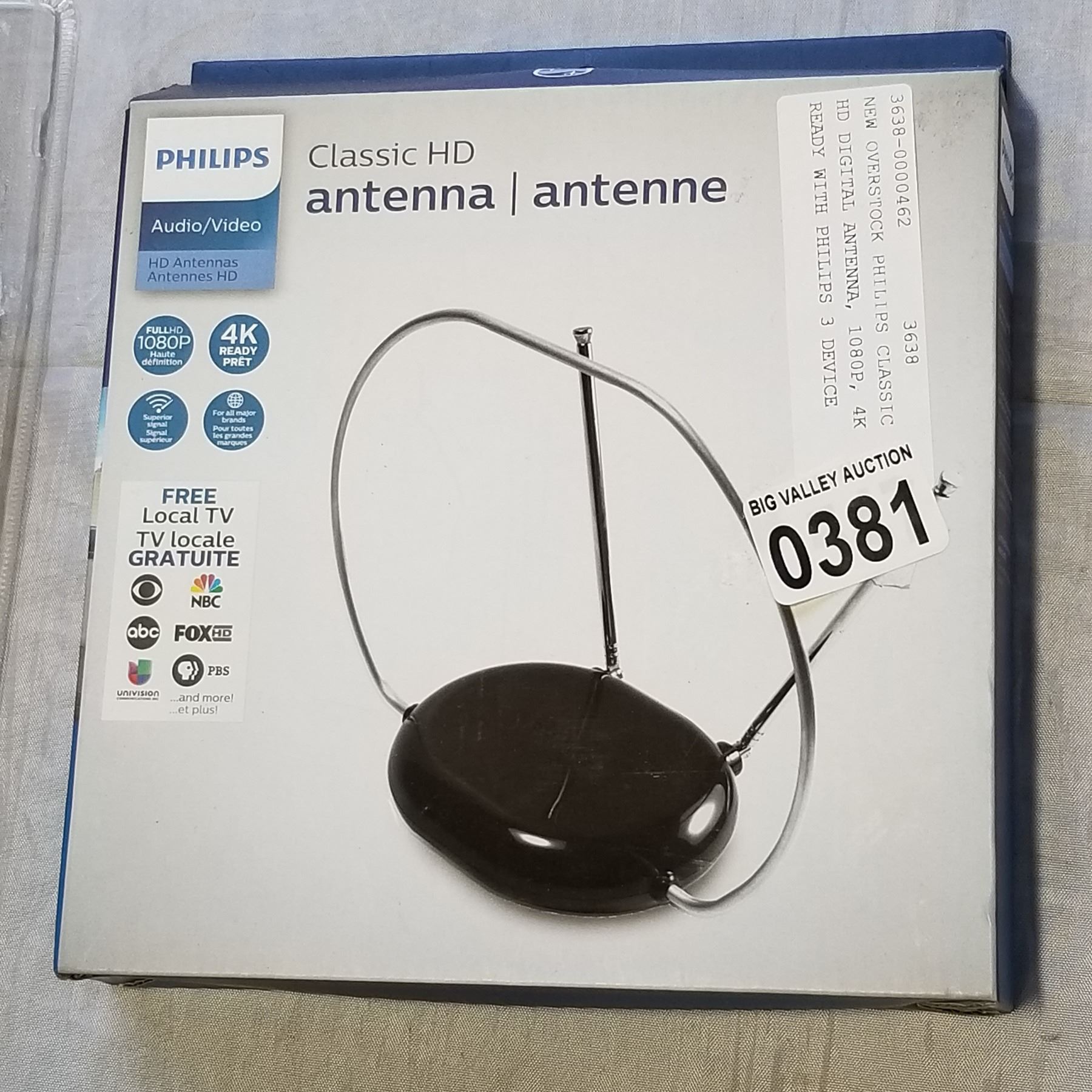 NEW OVERSTOCK PHILIPS CLASSIC HD DIGITAL ANTENNA, 1080P, 4K READY WITH PHILIPS 3 DEVICE UNIVERSAL RE