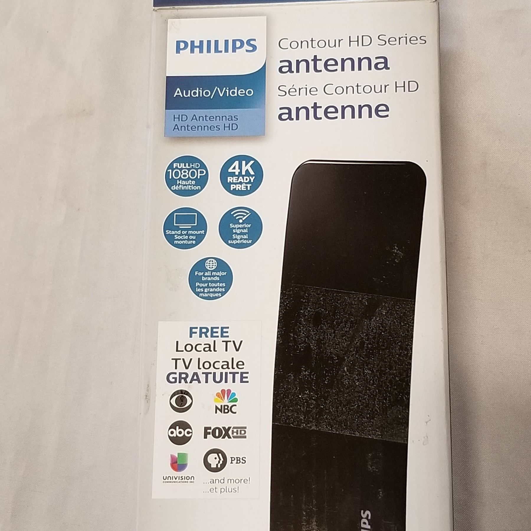 NEW OVERSTOCK PHILIPS CONTOUR HD DIGITAL ANTENNA, 1080P, 4K READY, 30 MILE RECEPTION RATING, WITH PH