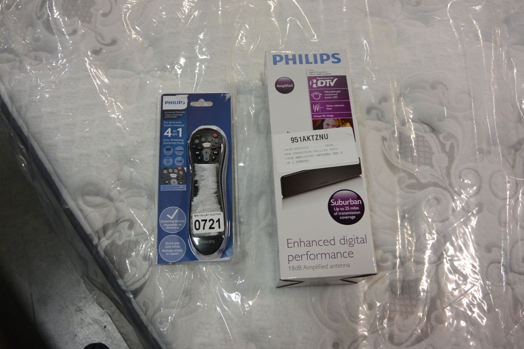 NEW OVERSTOCK PHILIPS HDTV 18DB AMPLIFIED ANTENNA AND 4 IN 1 REMOTE