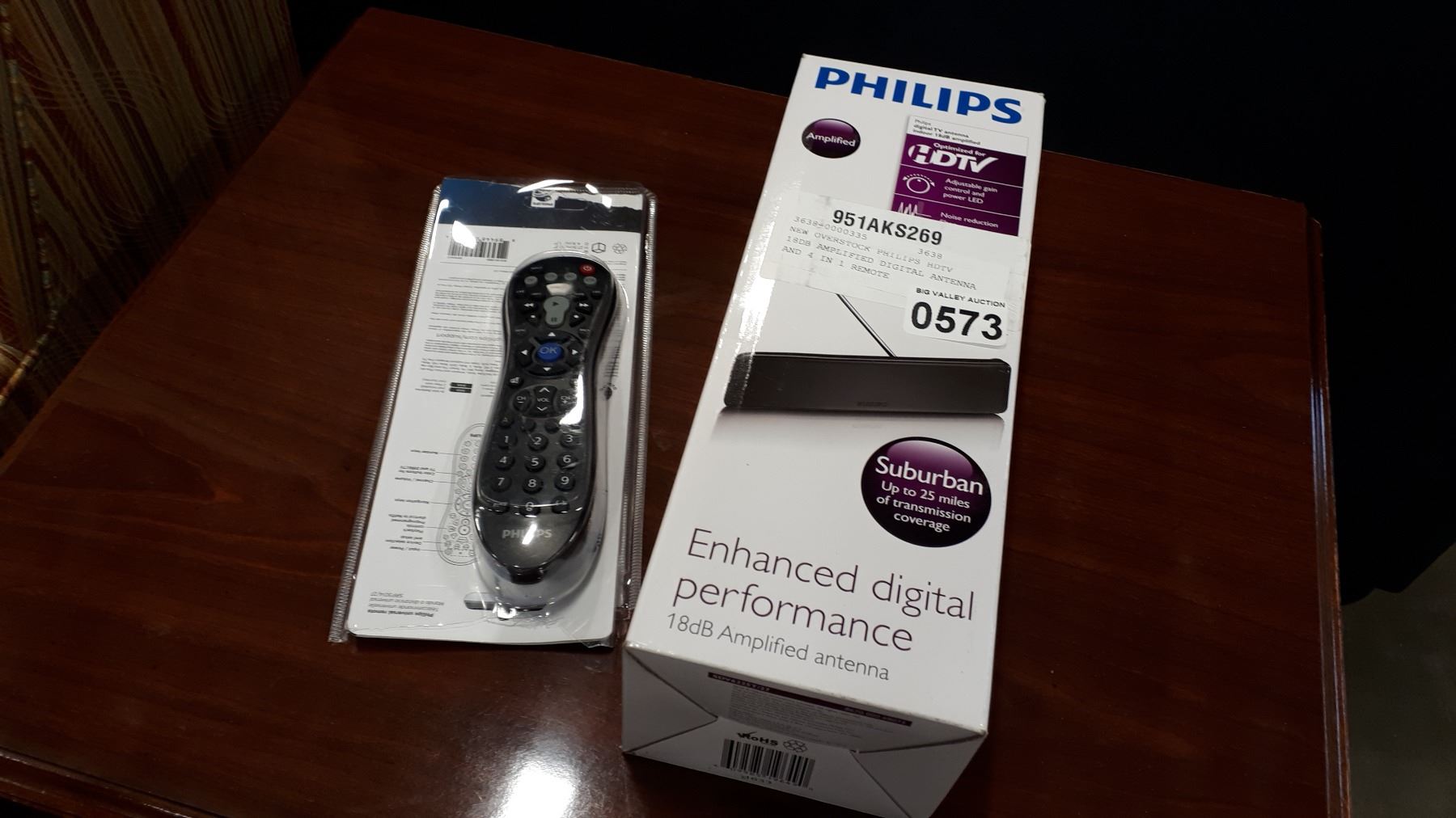 NEW OVERSTOCK PHILIPS HDTV 18DB AMPLIFIED DIGITAL ANTENNA AND 4 IN 1 REMOTE