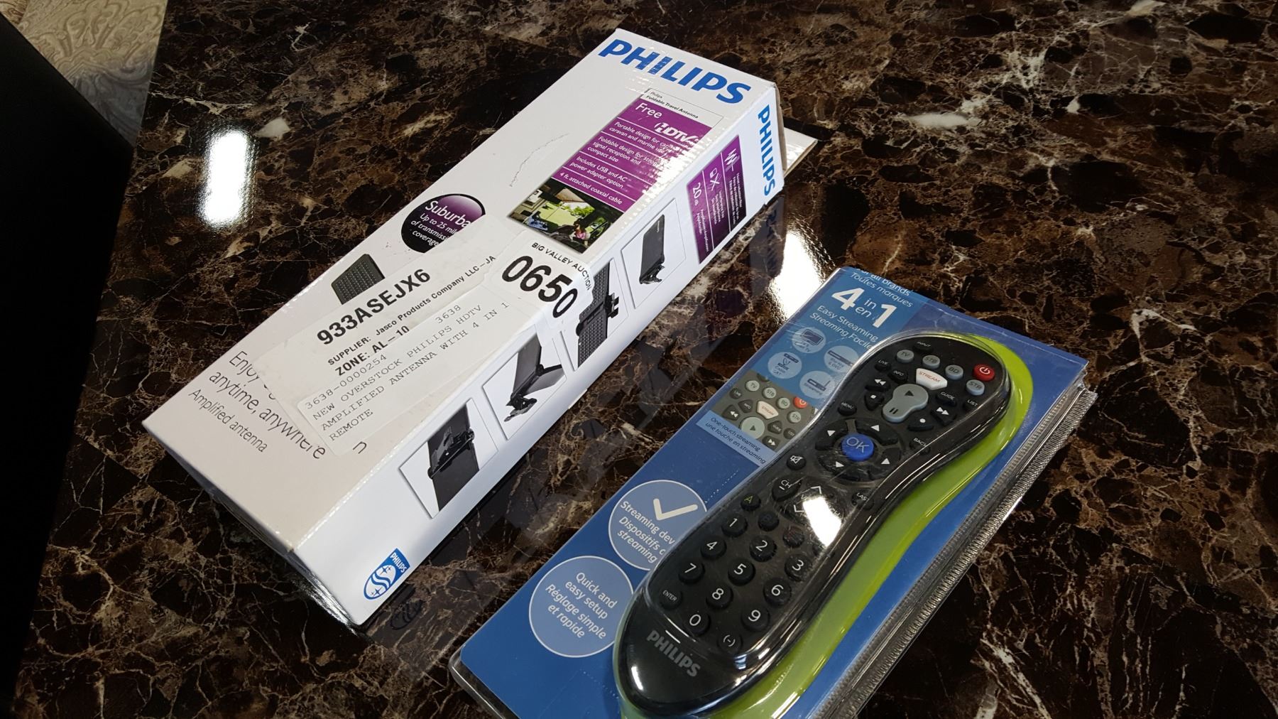 NEW OVERSTOCK PHILIPS HDTV AMPLIFIED ANTENNA WITH 4 IN 1 REMOTE