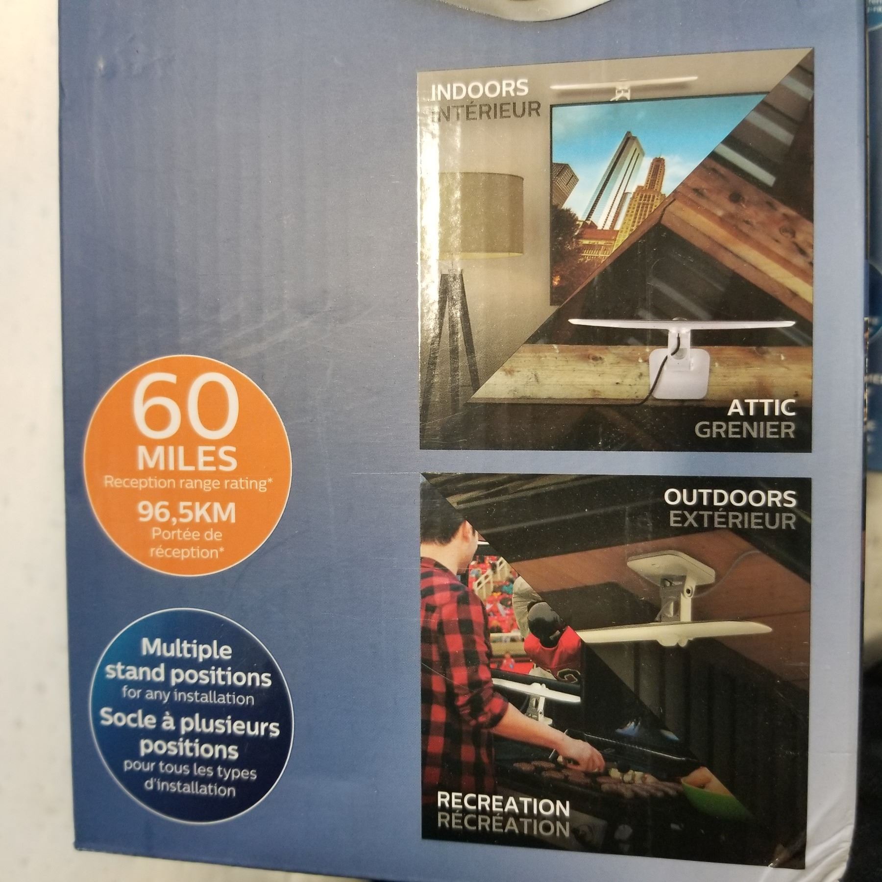 NEW OVERSTOCK PHILIPS WING ELITE HD DIGITAL ANTENNA, 1080P, 4K READY, 60 MILE RECEPTION RATING, WITH