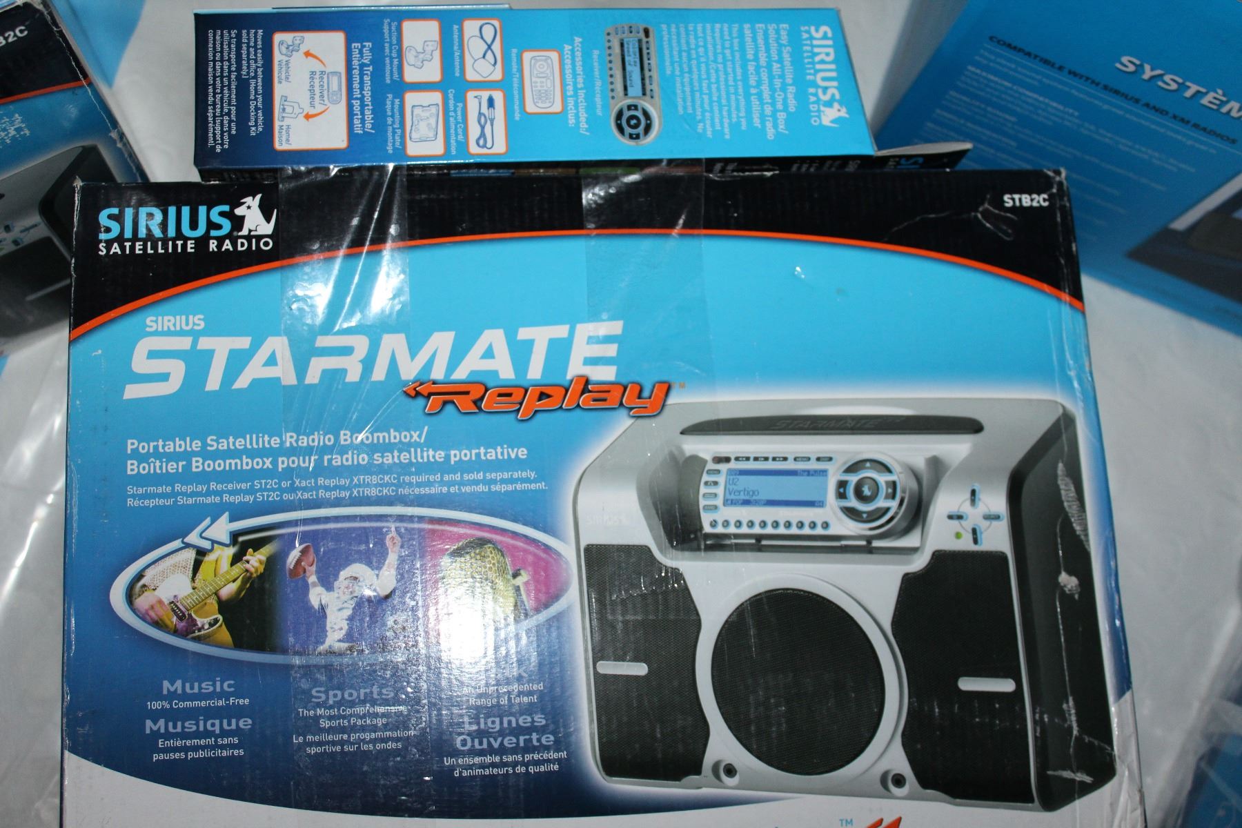 NEW OVERSTOCK STARMATE REPLAY SATELLITE RADIO BOOMBOX AND STARMATE REPLAY ALL IN ONE BOX