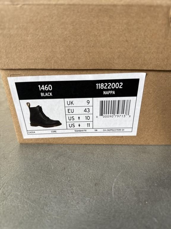 NEW PAIR OF DR. MARTENS AIR WAIR 1460 BLACK NAPPA BOOT SIZE US MENS 10, LADIES 11