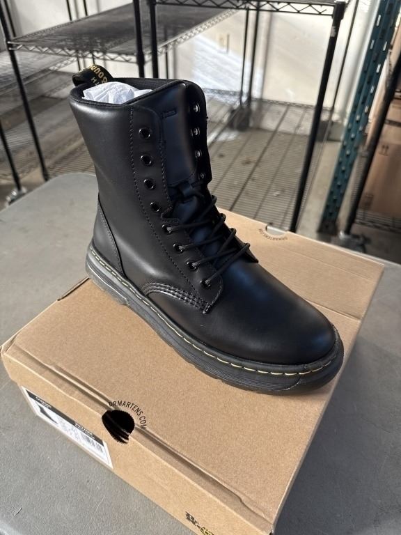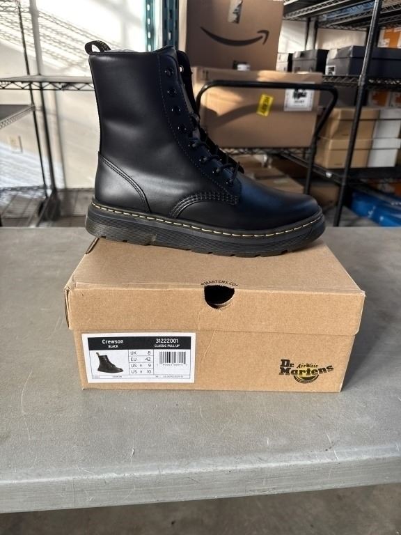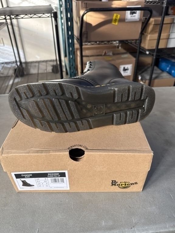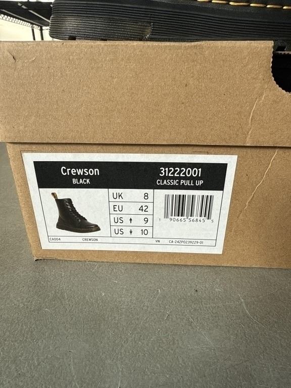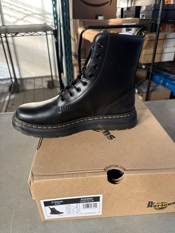 NEW PAIR OF DR. MARTENS AIR WAIR CREWSON BLACK CLASSIC PULL UP SIZE US MENS 9, LADIES 10